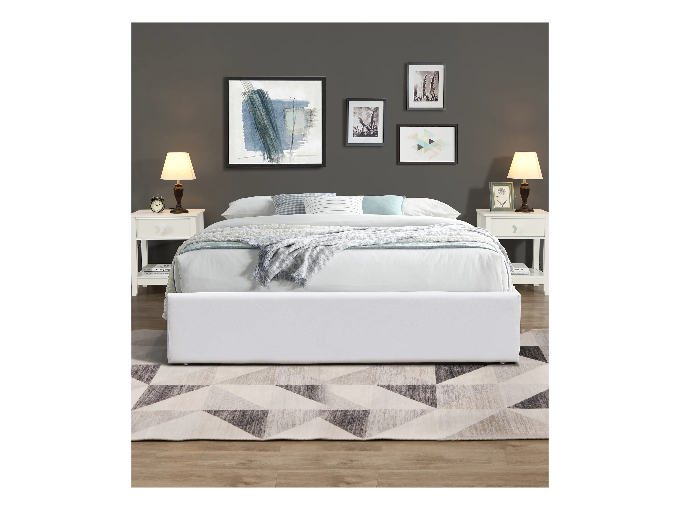 Lit Coffre Gris Loris 120x190 cm avec Pieds 2x12 Lattes Montage Rapide PVC Simili