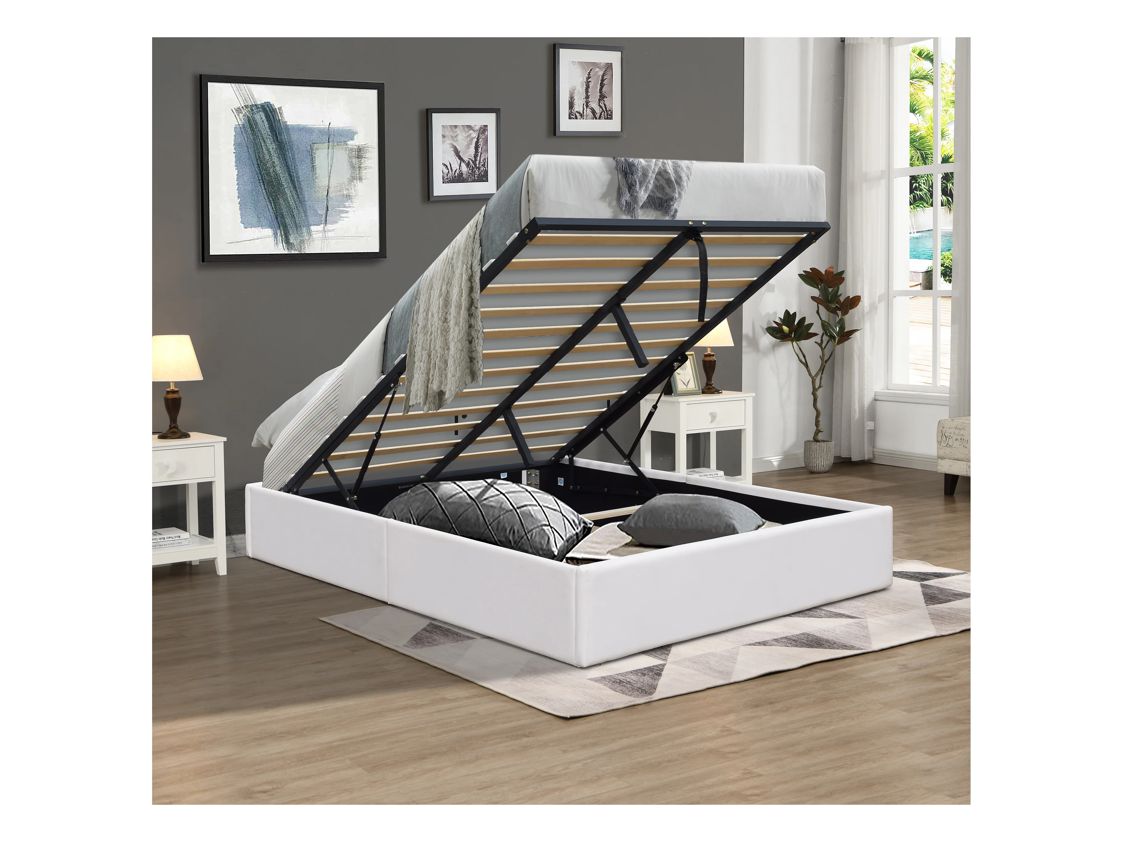 Lit Coffreur Gris 140x200 cm avec Pieds et 2 x 14 Lattes - Montage Rapide et Entretien Facile