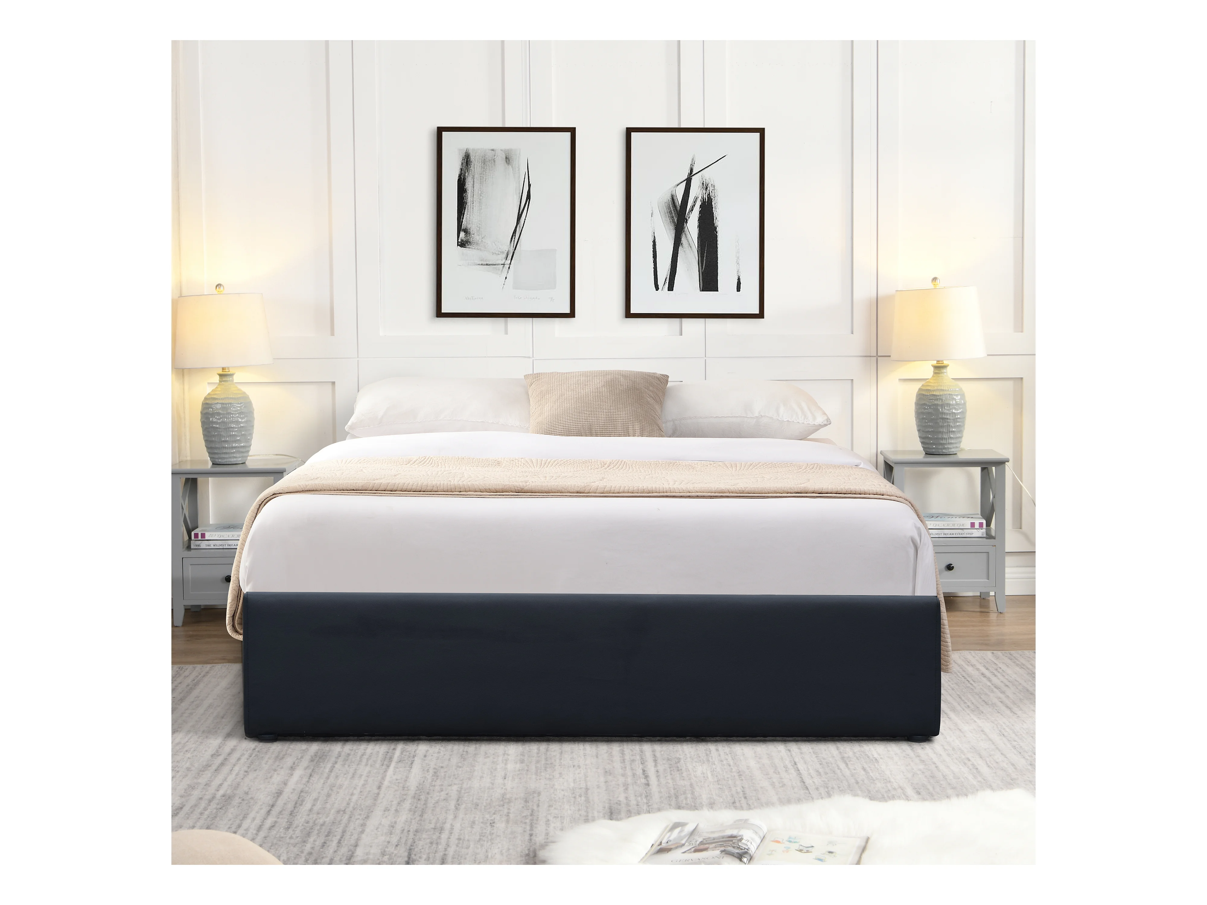 Lit Coffreur Noir Loris avec Pieds pour Matelas 140x200 cm - 2x14 Lattes - Montage Facile