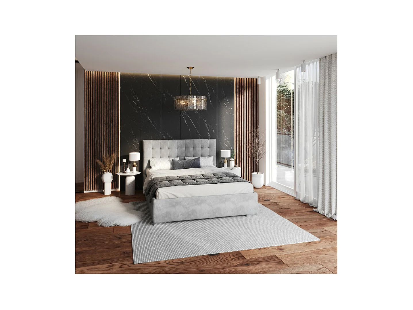 Lit coffre LUCERNO 160 x 200 cm avec sommier à lattes relevable Gris Clair