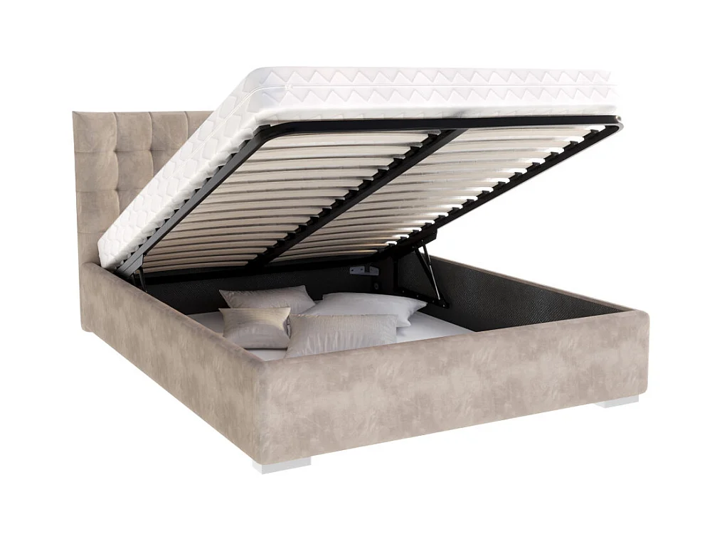 Lit coffre LUCERNO 160 x 200 cm avec sommier à lattes relevable Taupe