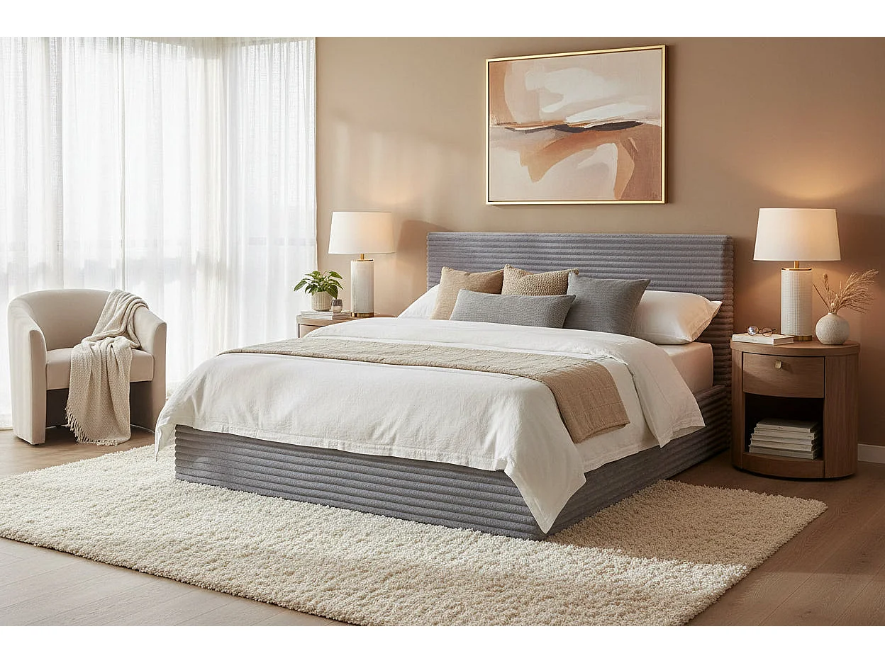 Lit Coffre MAIA 160x200cm Côtelé Gris avec Sommier