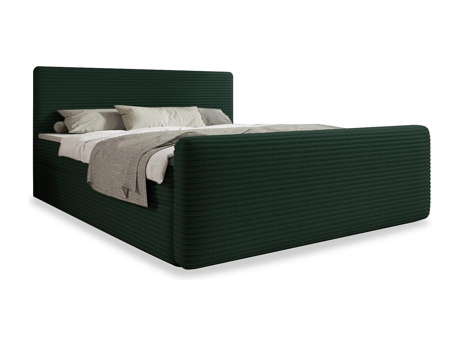 Lit coffre + matelas Napoli 140cm velours côtelé Vert