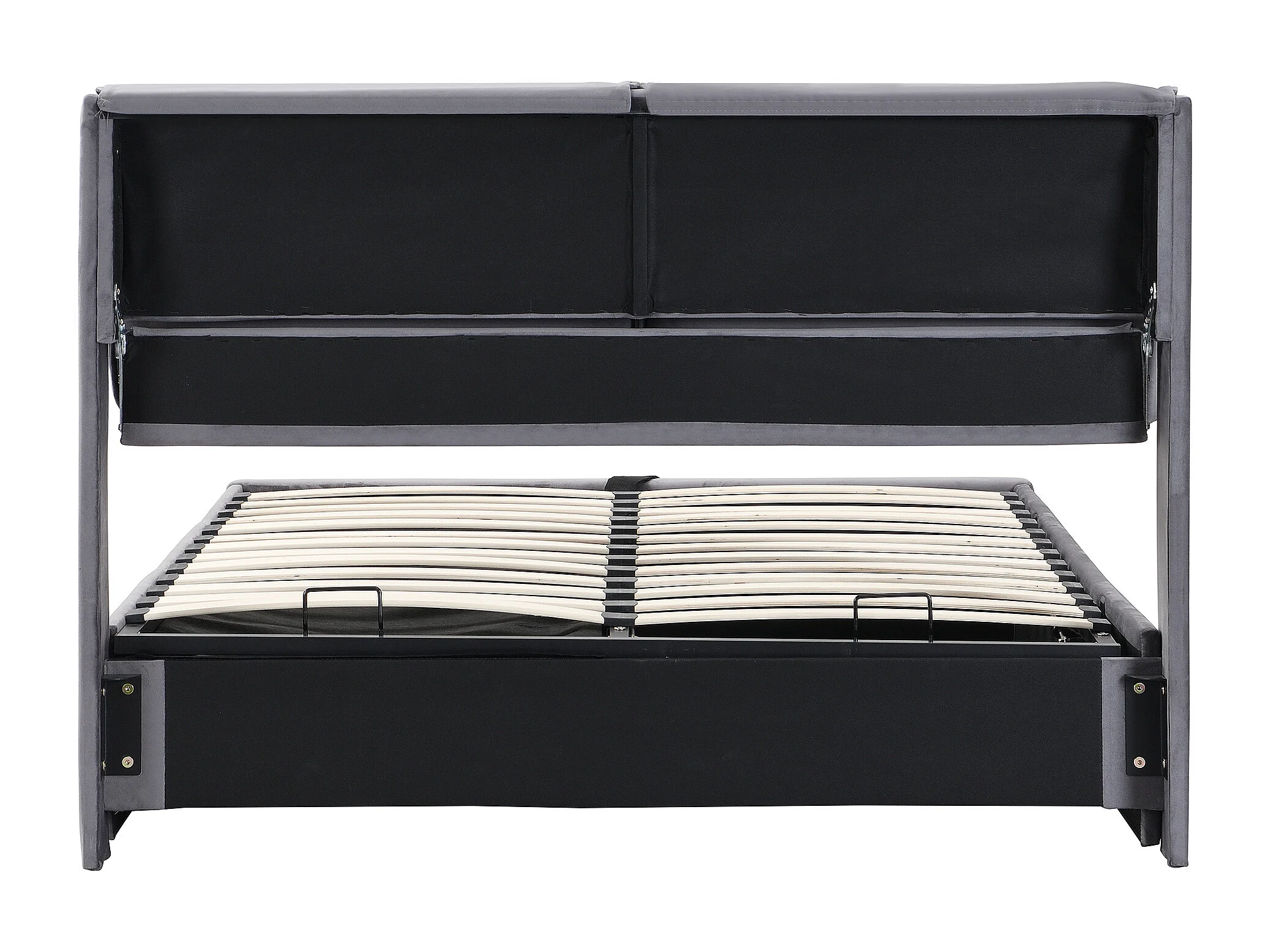 Lit coffre moderne 140 x 190 cm, 3 tiroirs, sommier à lattes, tête de lit, velours gris, sans matelas