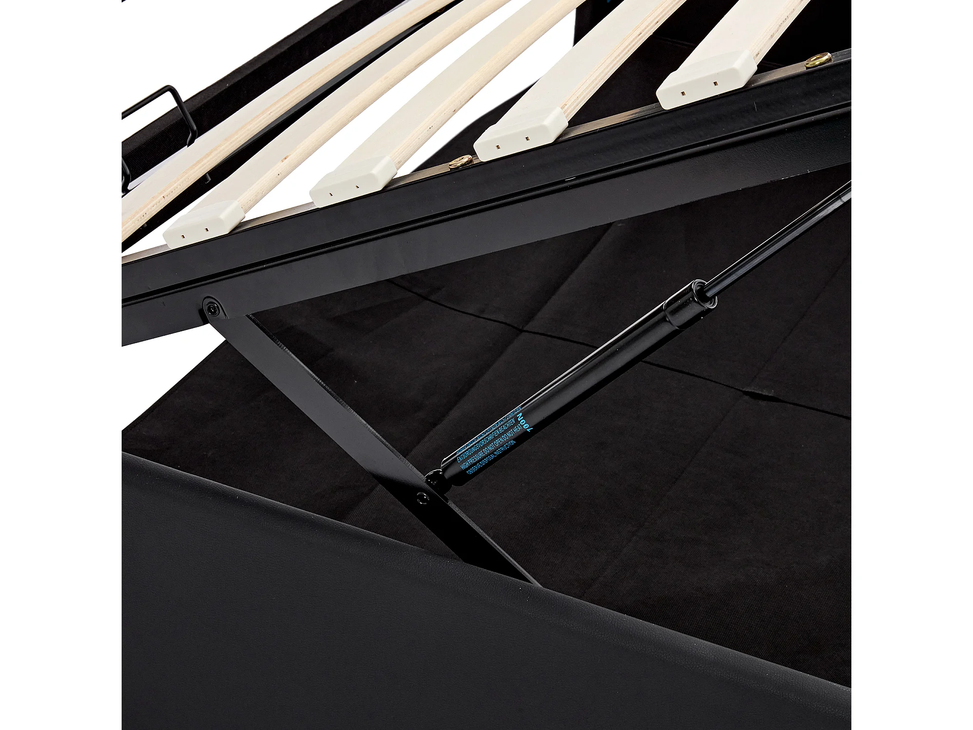 Lit coffre moderne 140x190 cm, port USB (charge sans fil et filaire), LED, rangement, PU noir, sans matelas