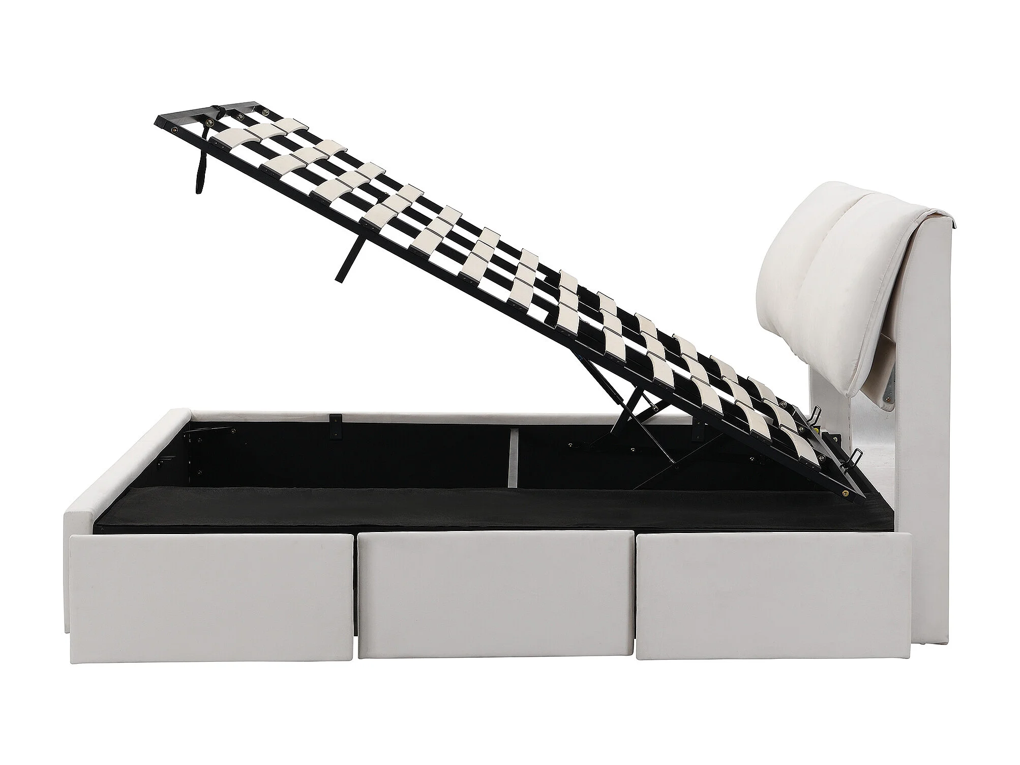 Lit coffre moderne180 x 200 cm, tiroirs, sommier à lattes, tête de lit, velours beige, sans matelas