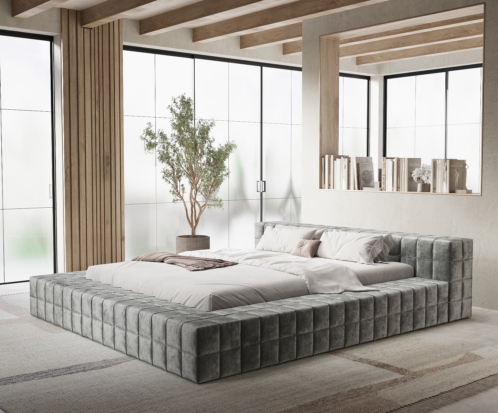 Lit coffre Nessino - 140 x 200 cm - chenille - gris