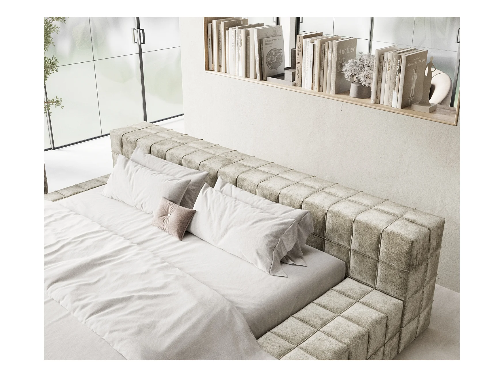 Lit coffre Nessino - 180 x 200 cm - chenille - beige