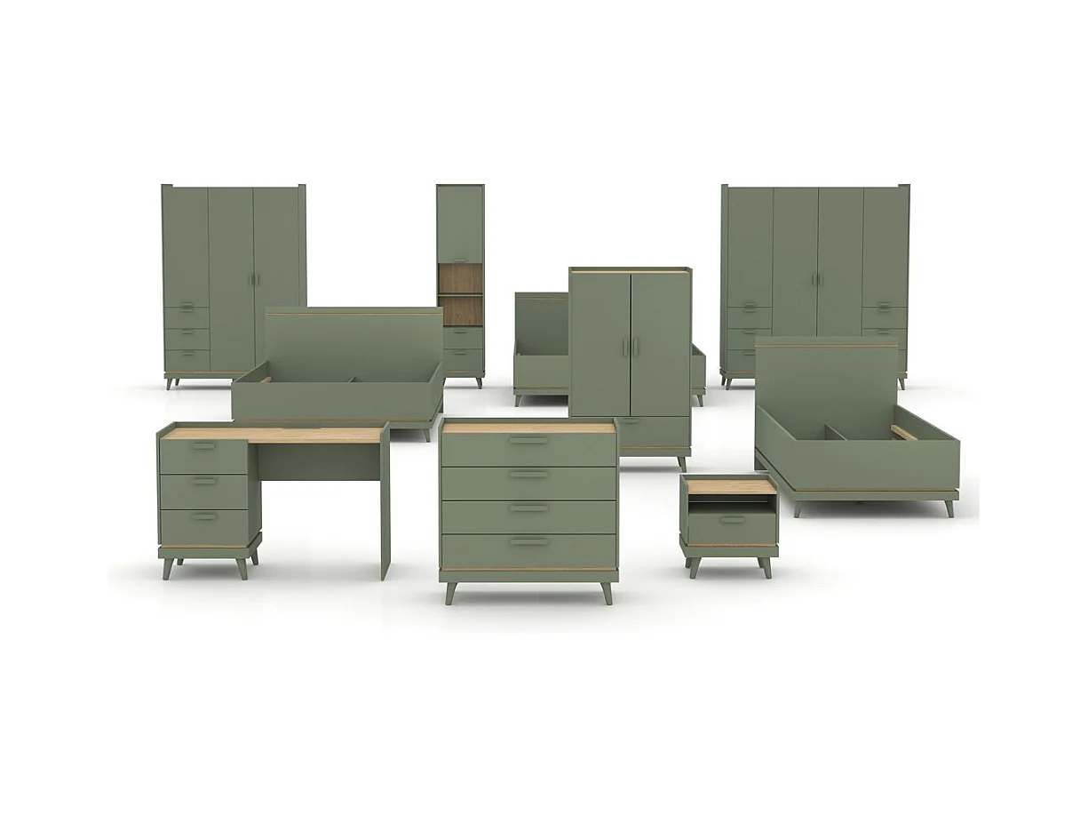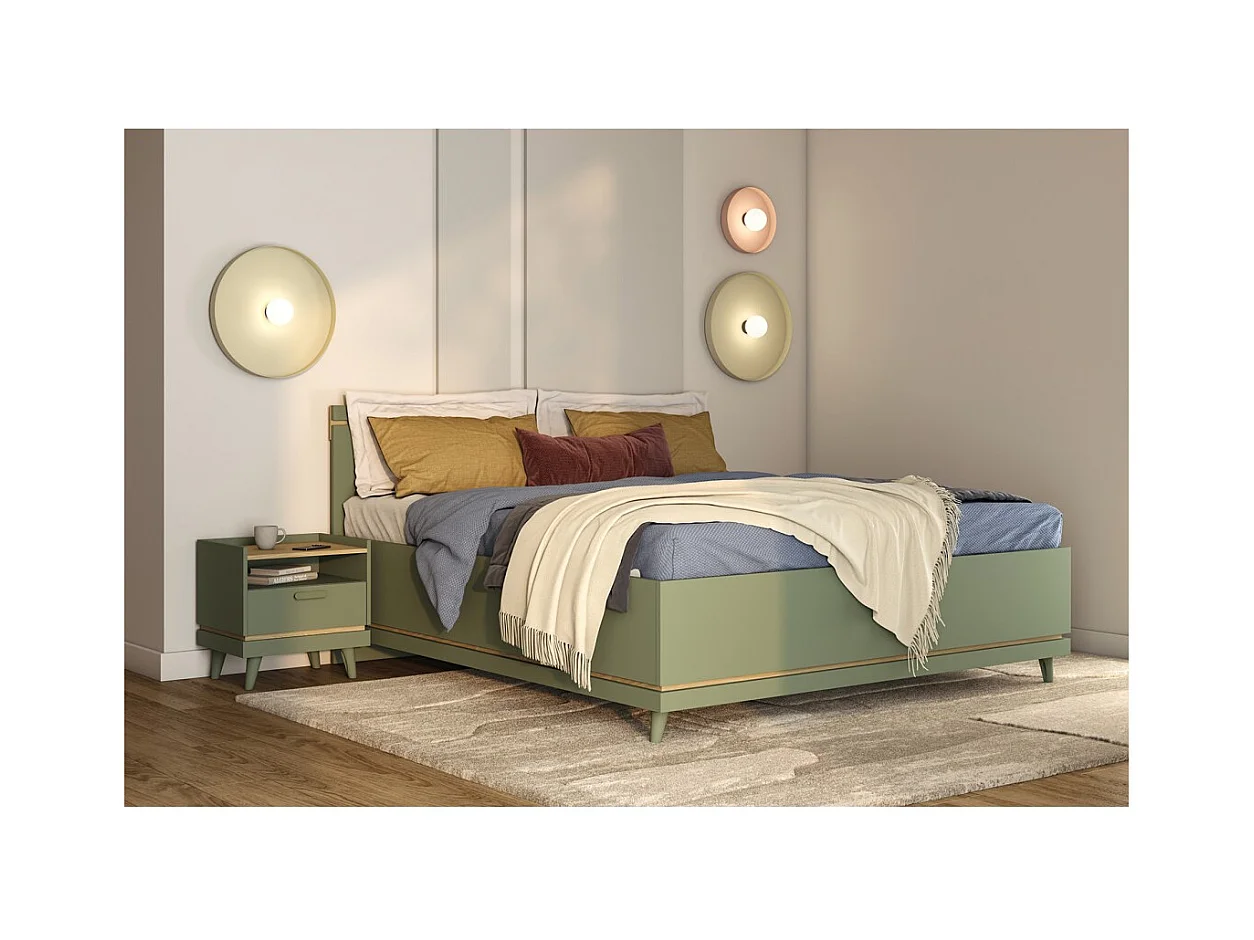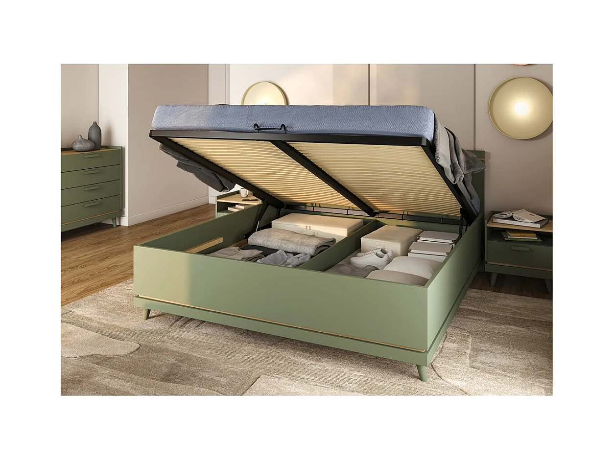 Lit coffre NOKI – 160x200 cm vert et bois – Style scandinave