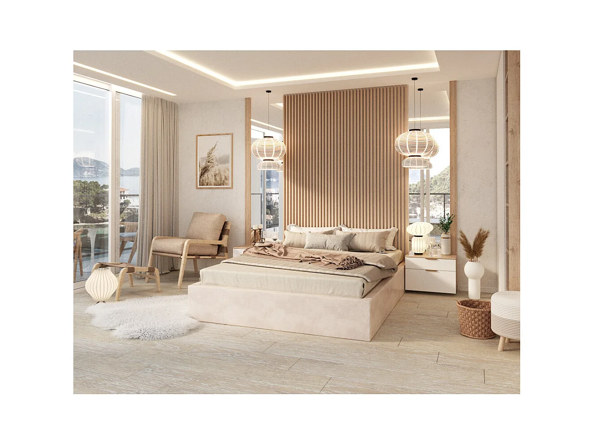 Lit coffre Orlane 120 x 200 cm avec sommier à lattes relevable Beige Foncé