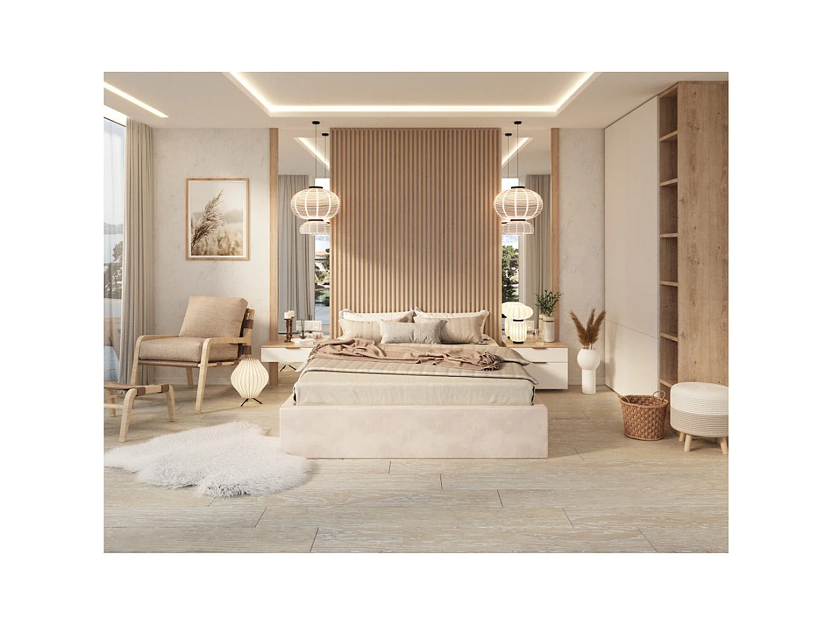 Lit coffre Orlane 140 x 200 cm avec sommier à lattes relevable Beige Foncé