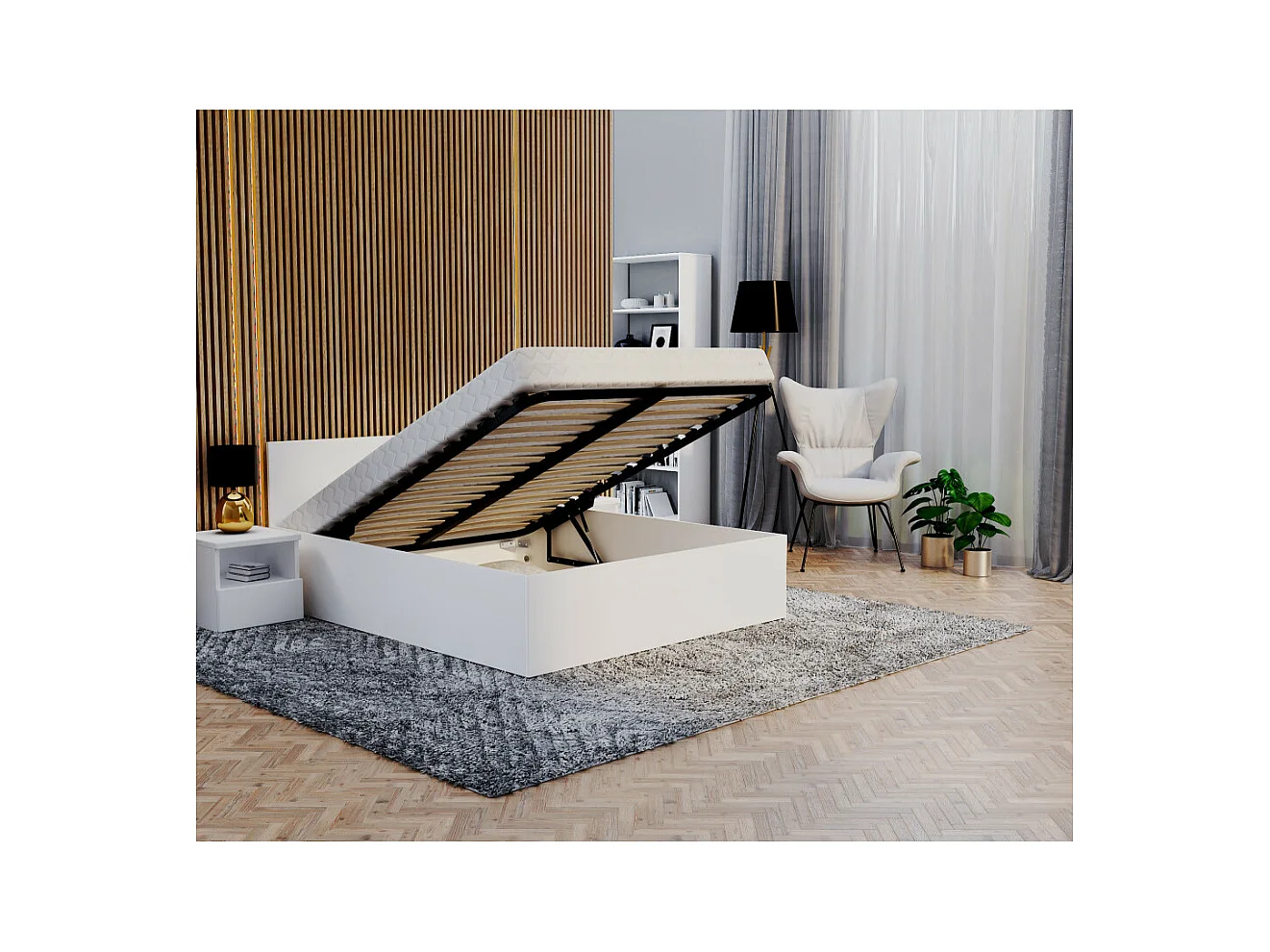 Lit coffre Paris 120 x 200 cm avec sommier à lattes relevable Blanc