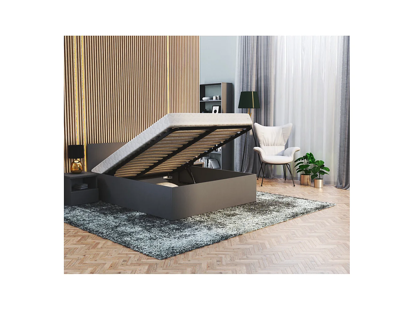 Lit coffre Paris 140 x 200 cm avec sommier à lattes relevable Gris