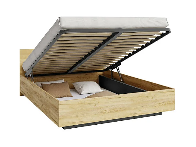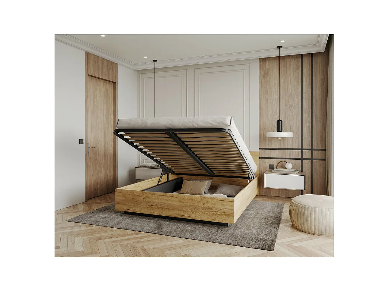 Lit coffre Perou 140 x 200 cm avec sommier à lattes relevable Chêne