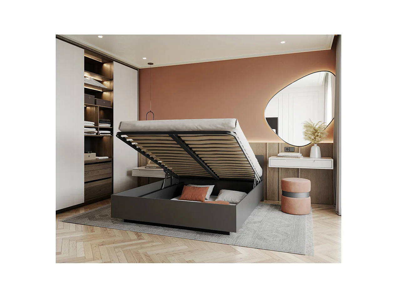 Lit coffre Perou 160 x 200 cm avec sommier à lattes relevable Gris Foncé