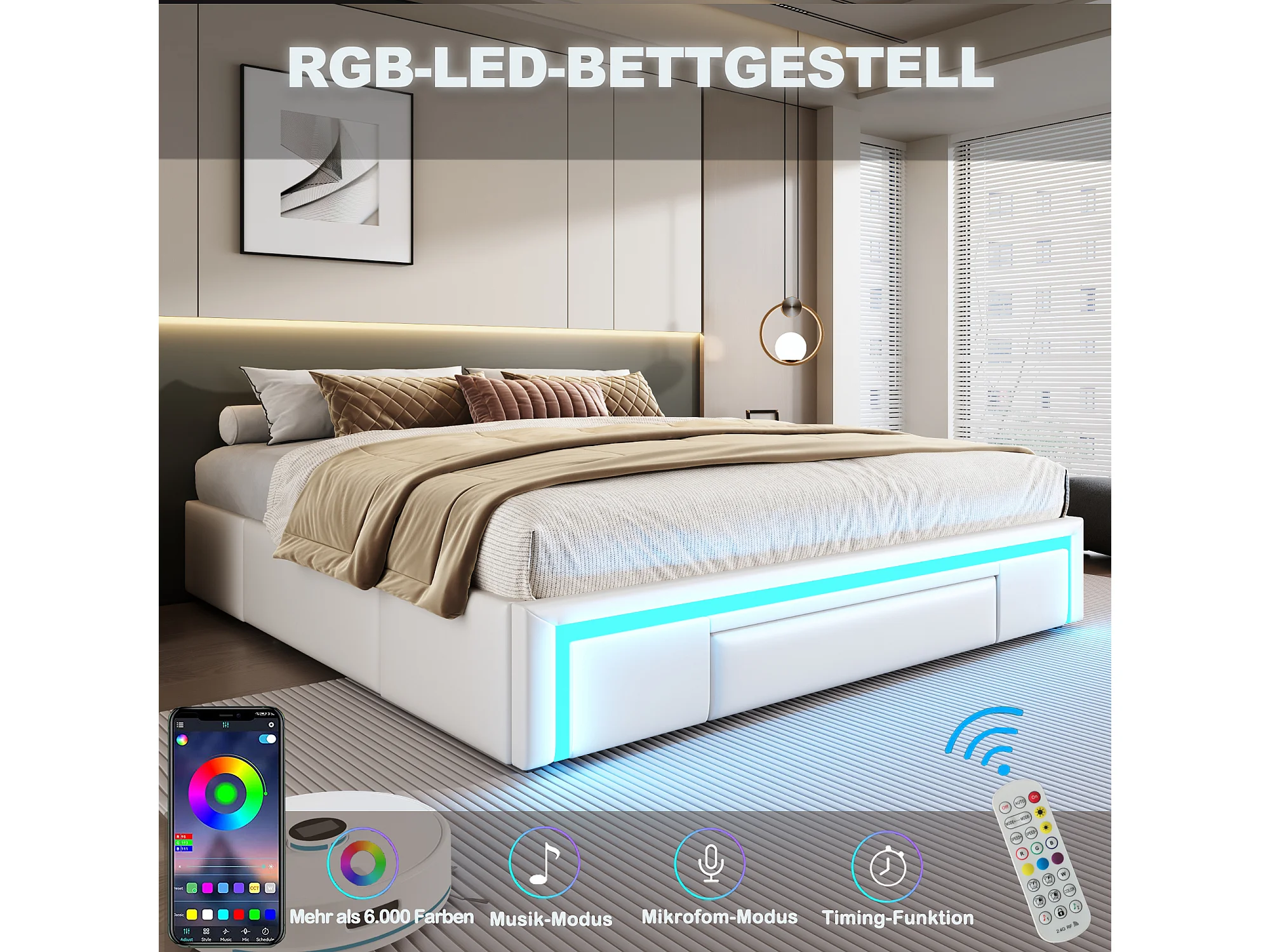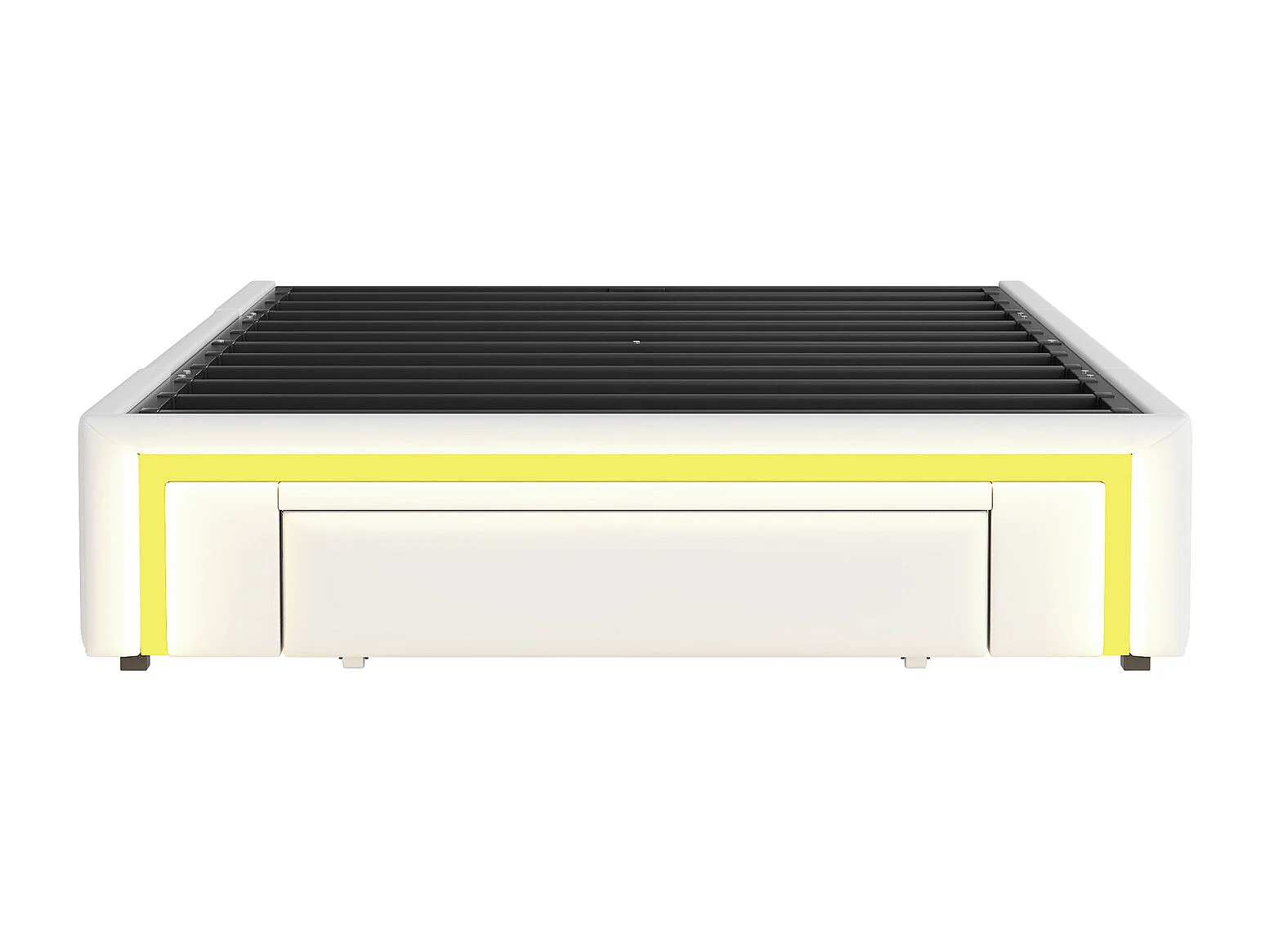 lit coffre pour enfant - 90 x 200 cm - avec 2 tiroirs + Leds - sans tête de lit - Cuir PU + métal + MDF - blanc