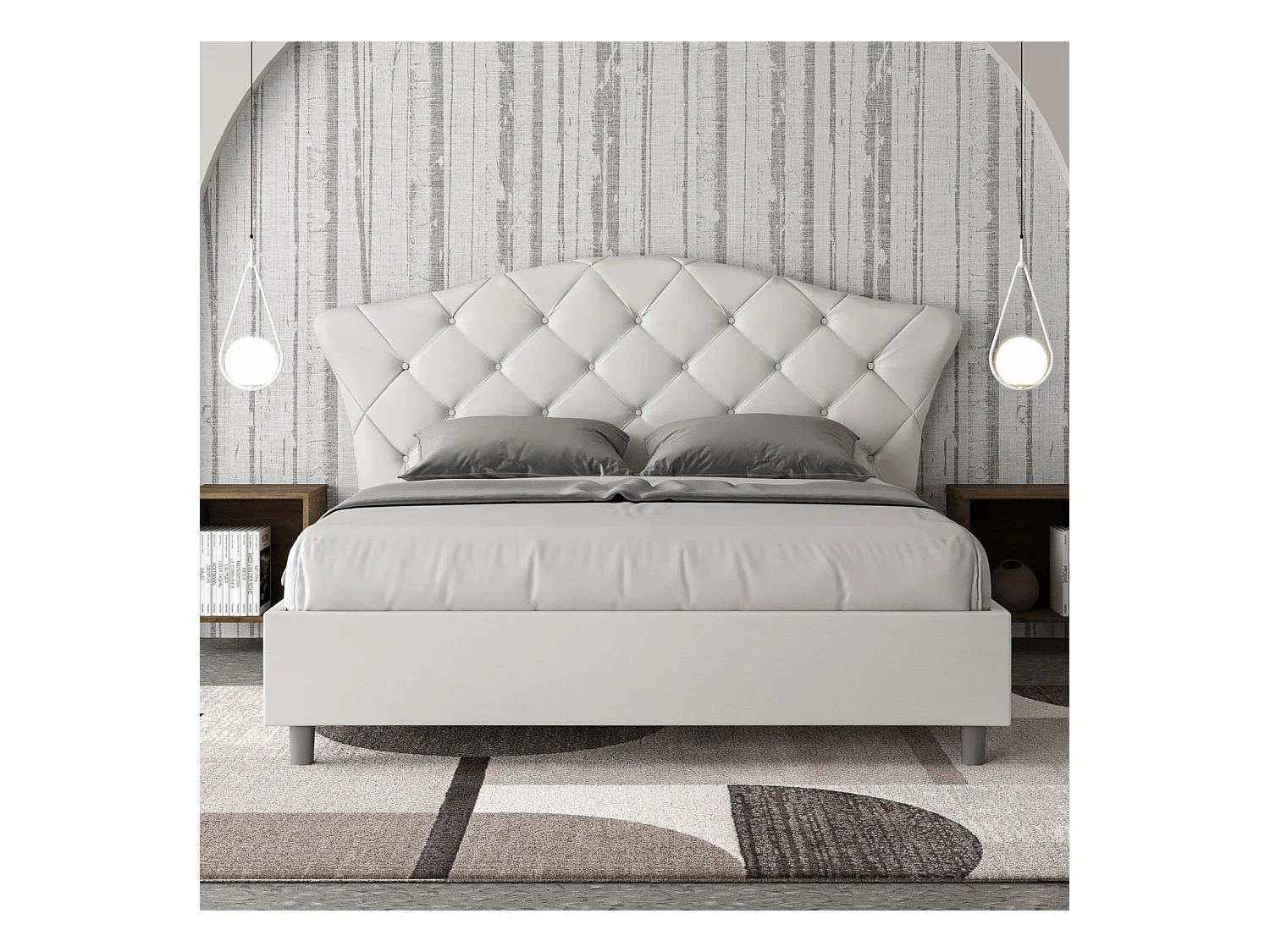 Lit coffre rembourrée 160x200 similicuir blanc Langre