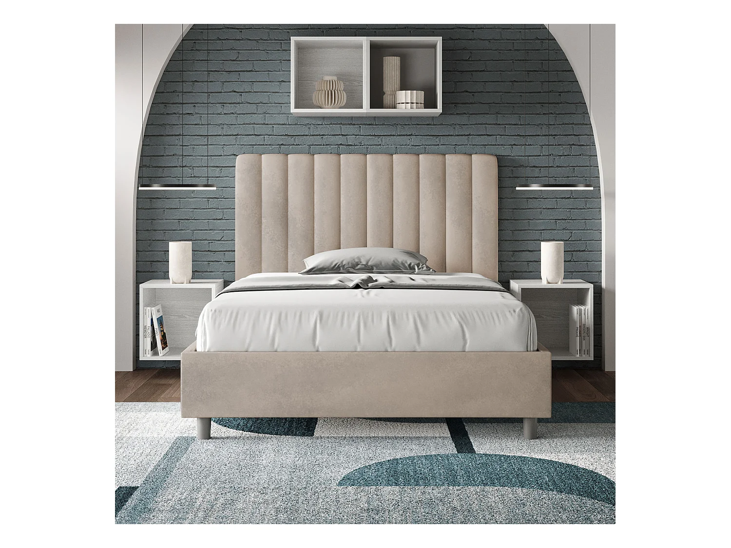 Lit 1 place et demi coffre rembourré 120x200 microfibre sable Agueda