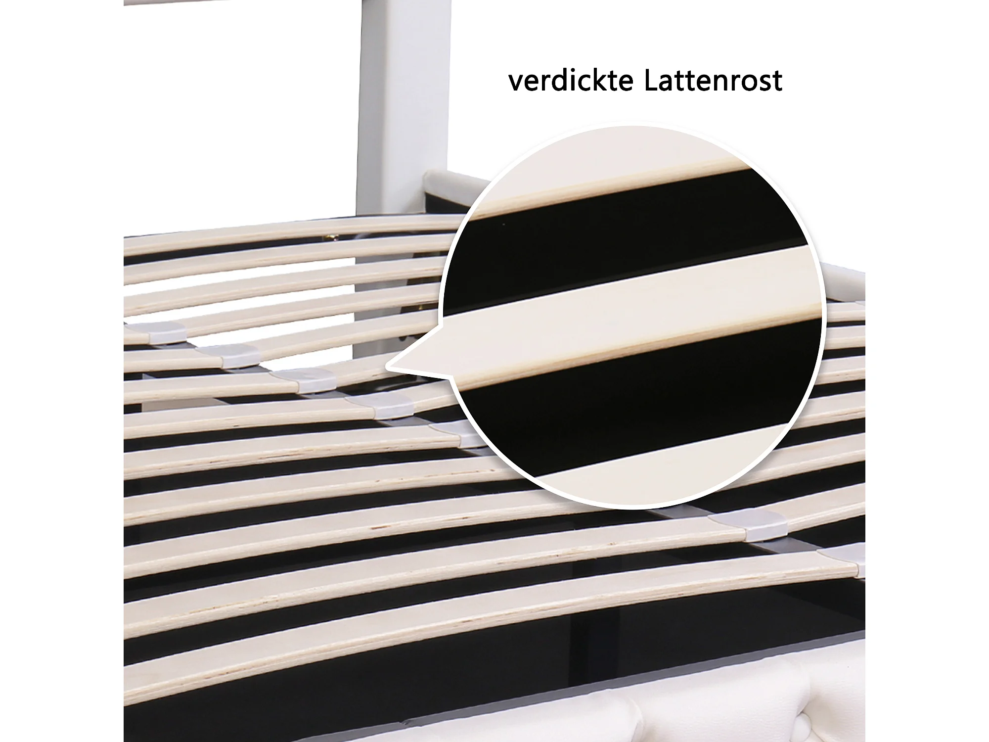 Lit coffre rembourré - 140 x 190 cm - avec sommier à lattes + rangement hydraulique + Leds - PU - blanc