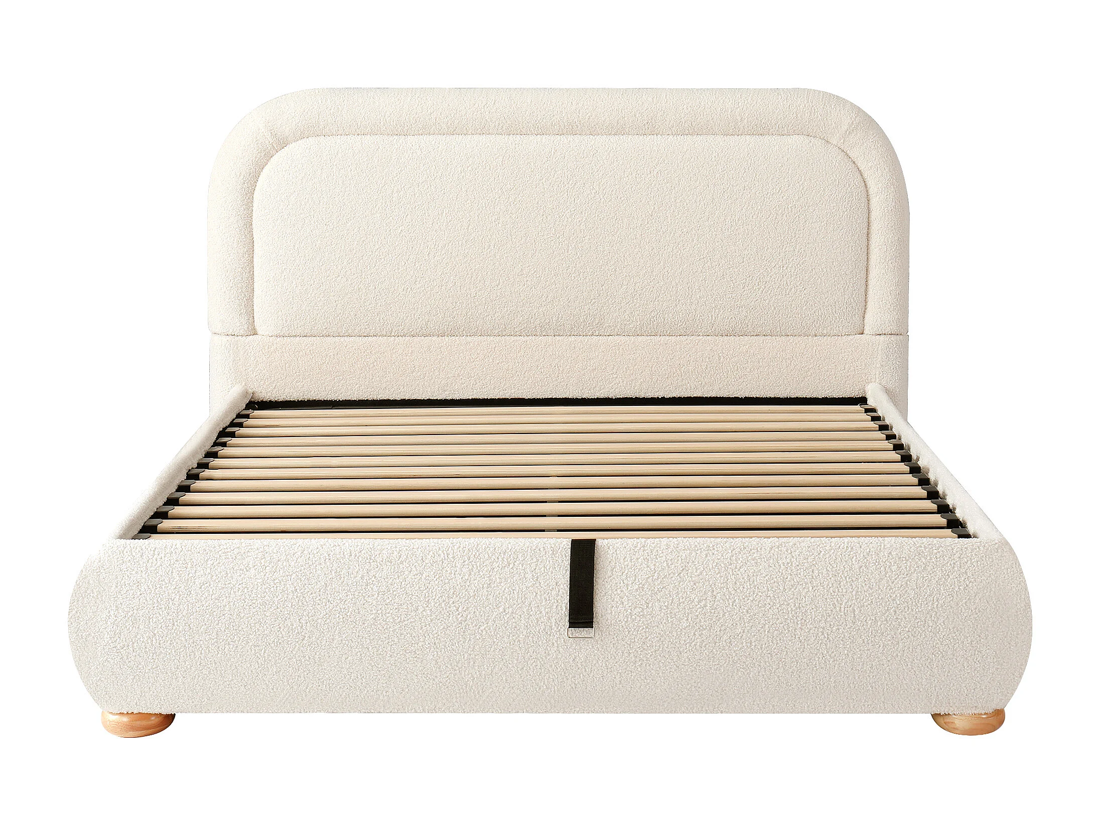 Lit coffre rembourré 140x190 cm - avec sommier à lattes - Tissu bouclé - Beige (matelas non inclus)