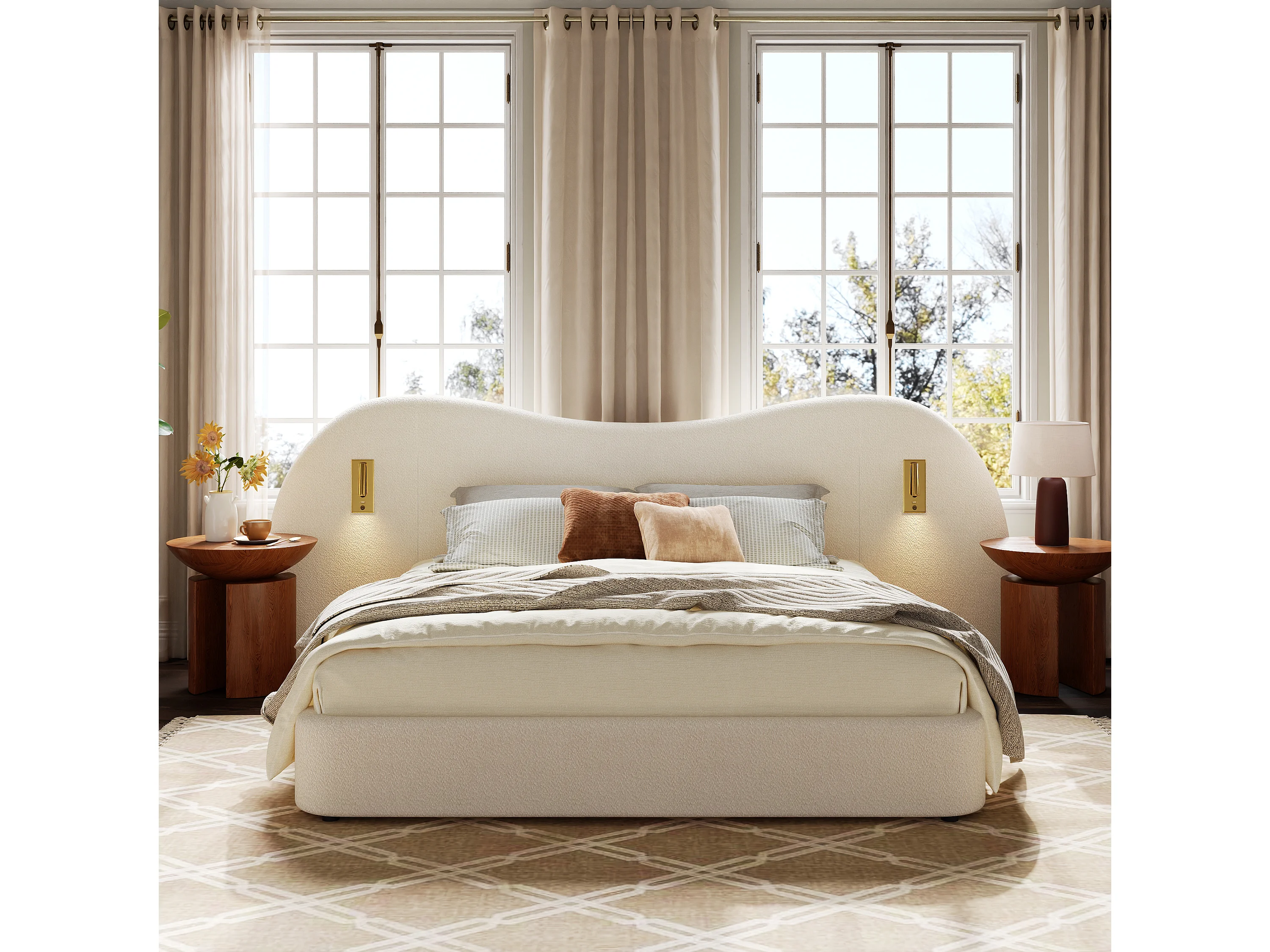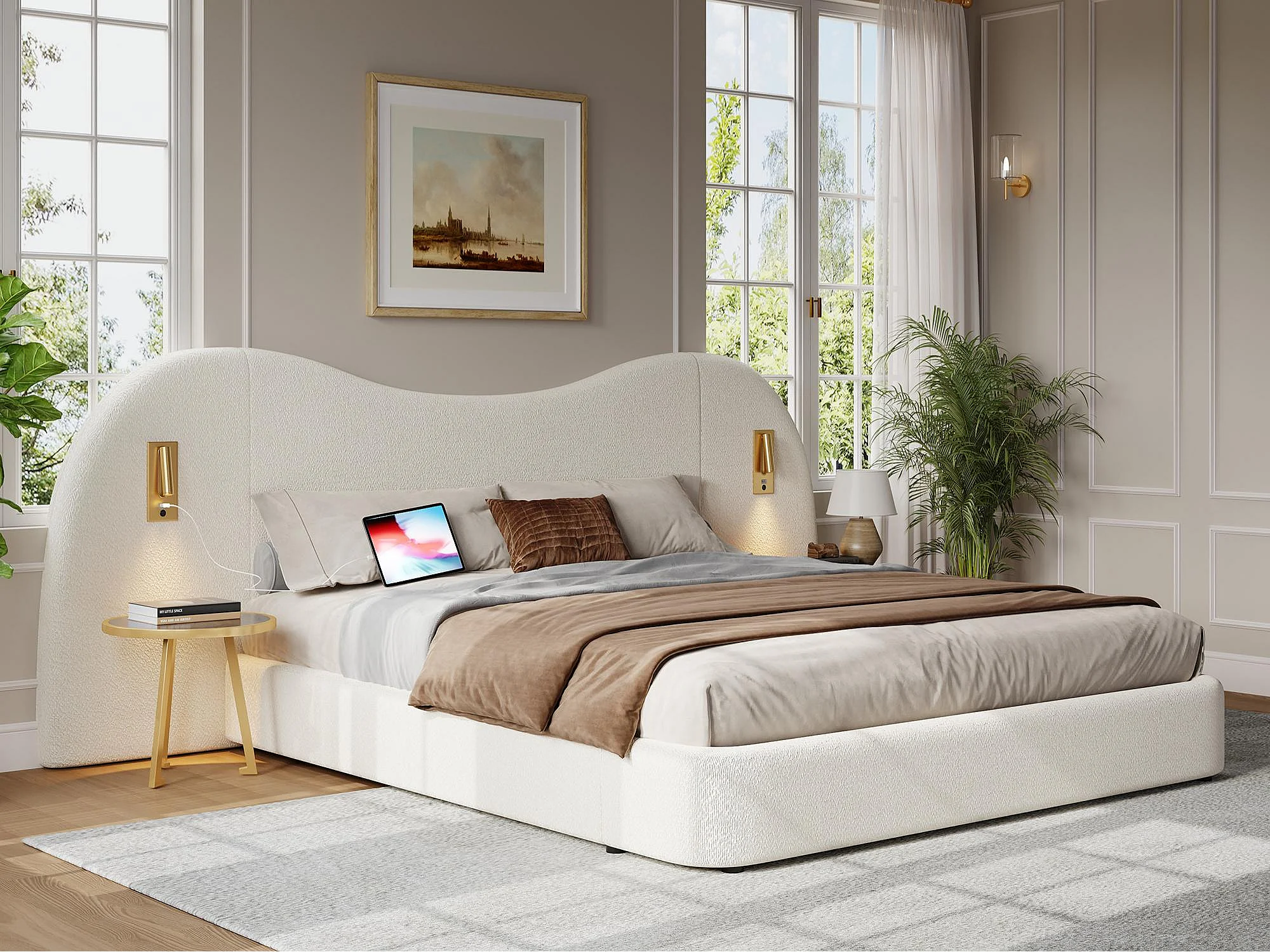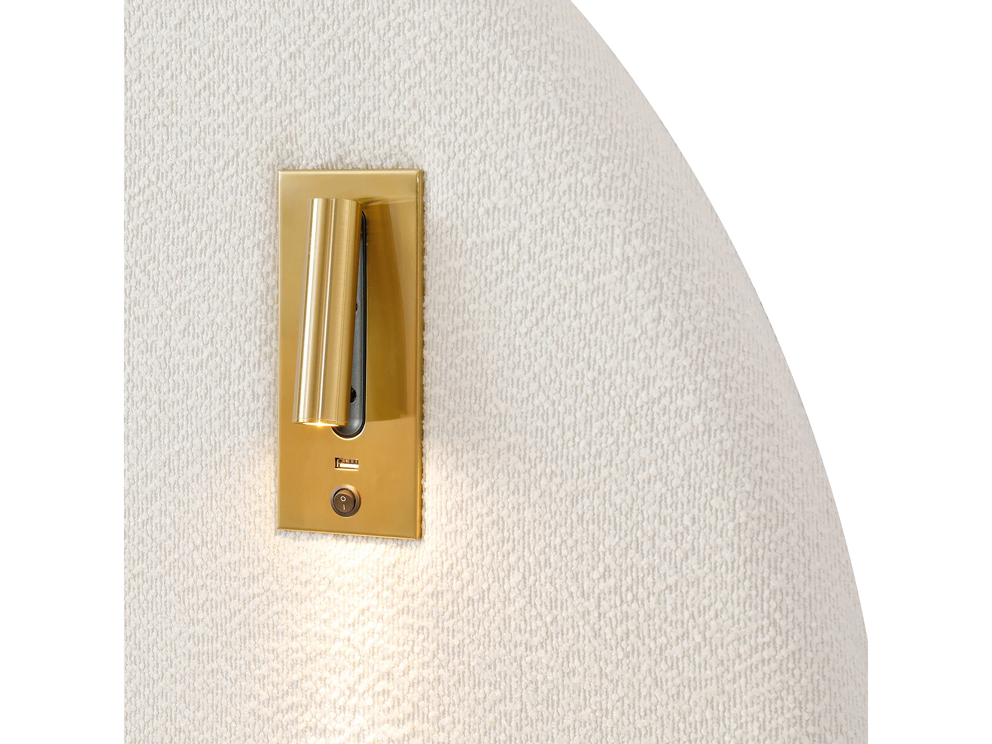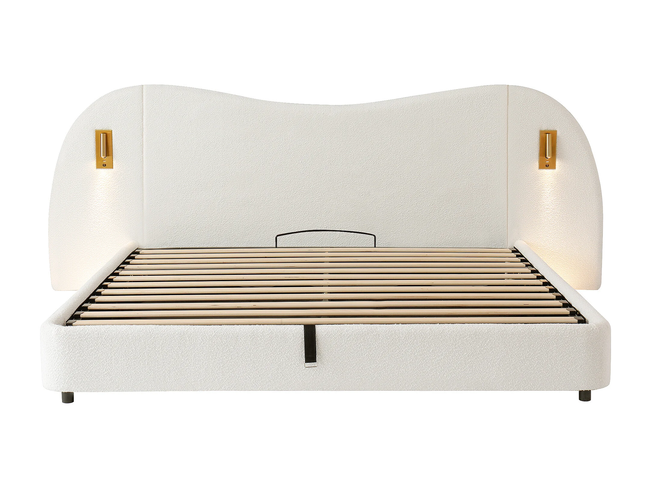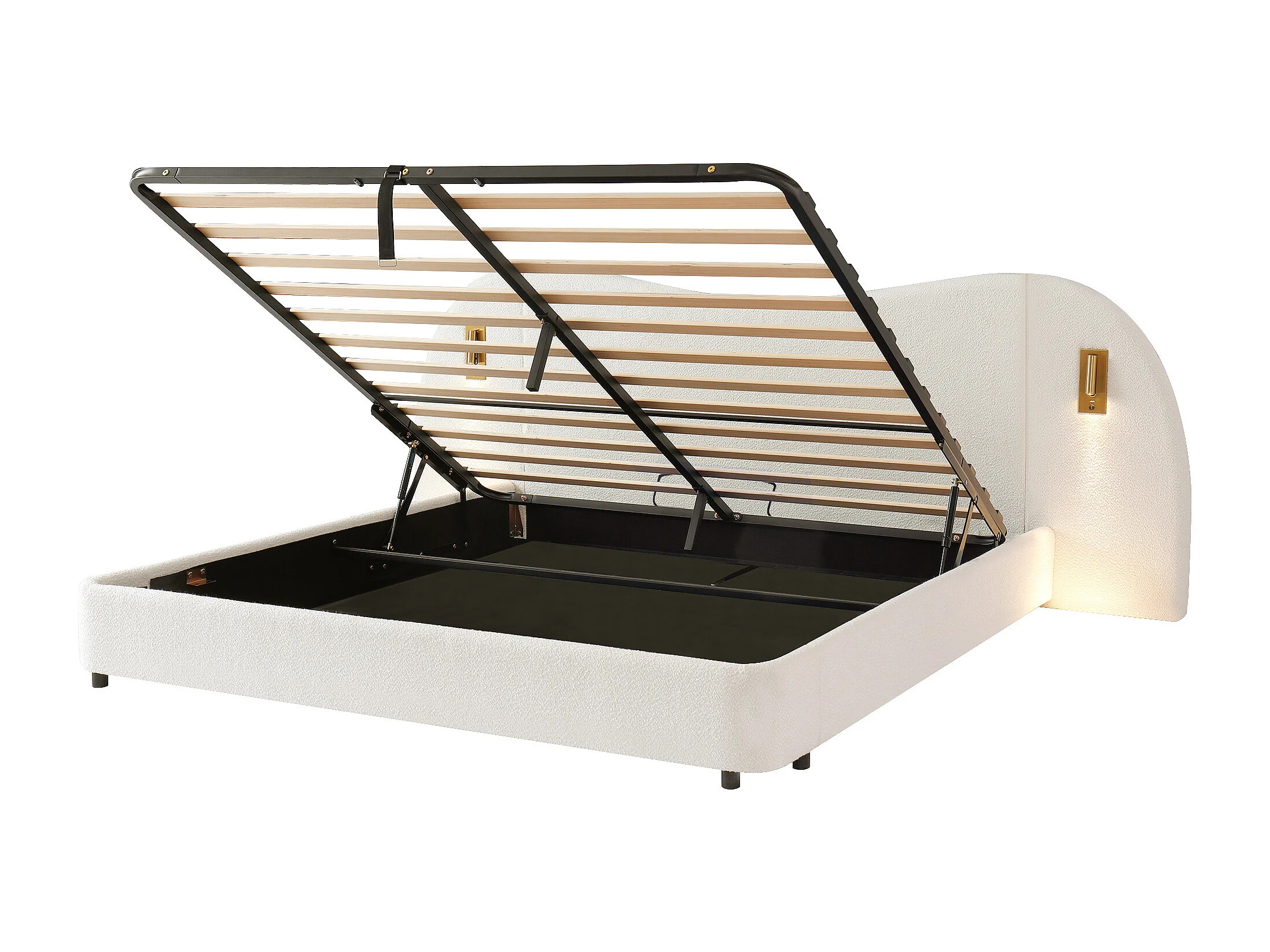 Lit coffre rembourré 180x200 cm - avec USB et lampe de lecture - Tissu bouclé - Blanc (sans matelas)