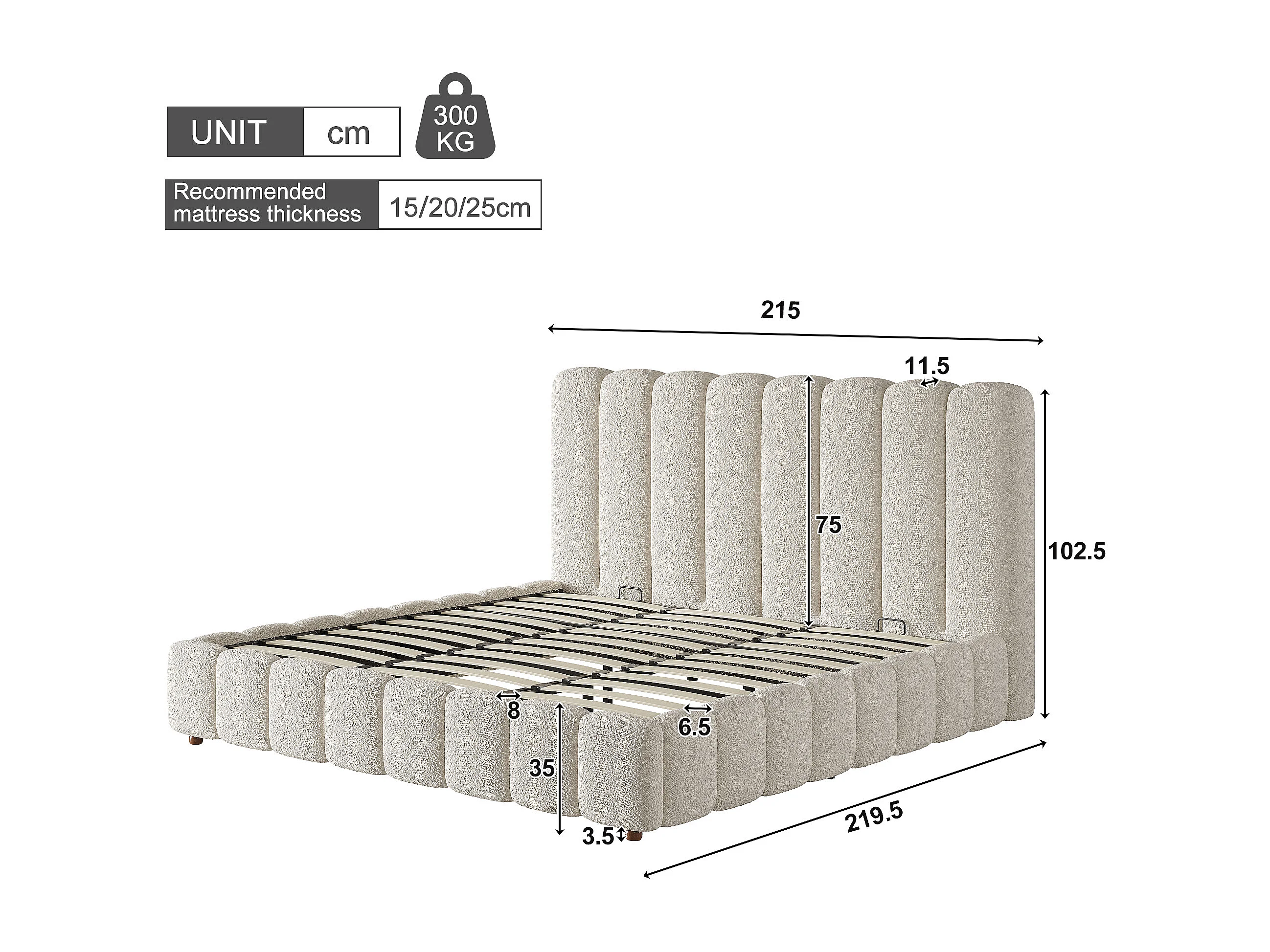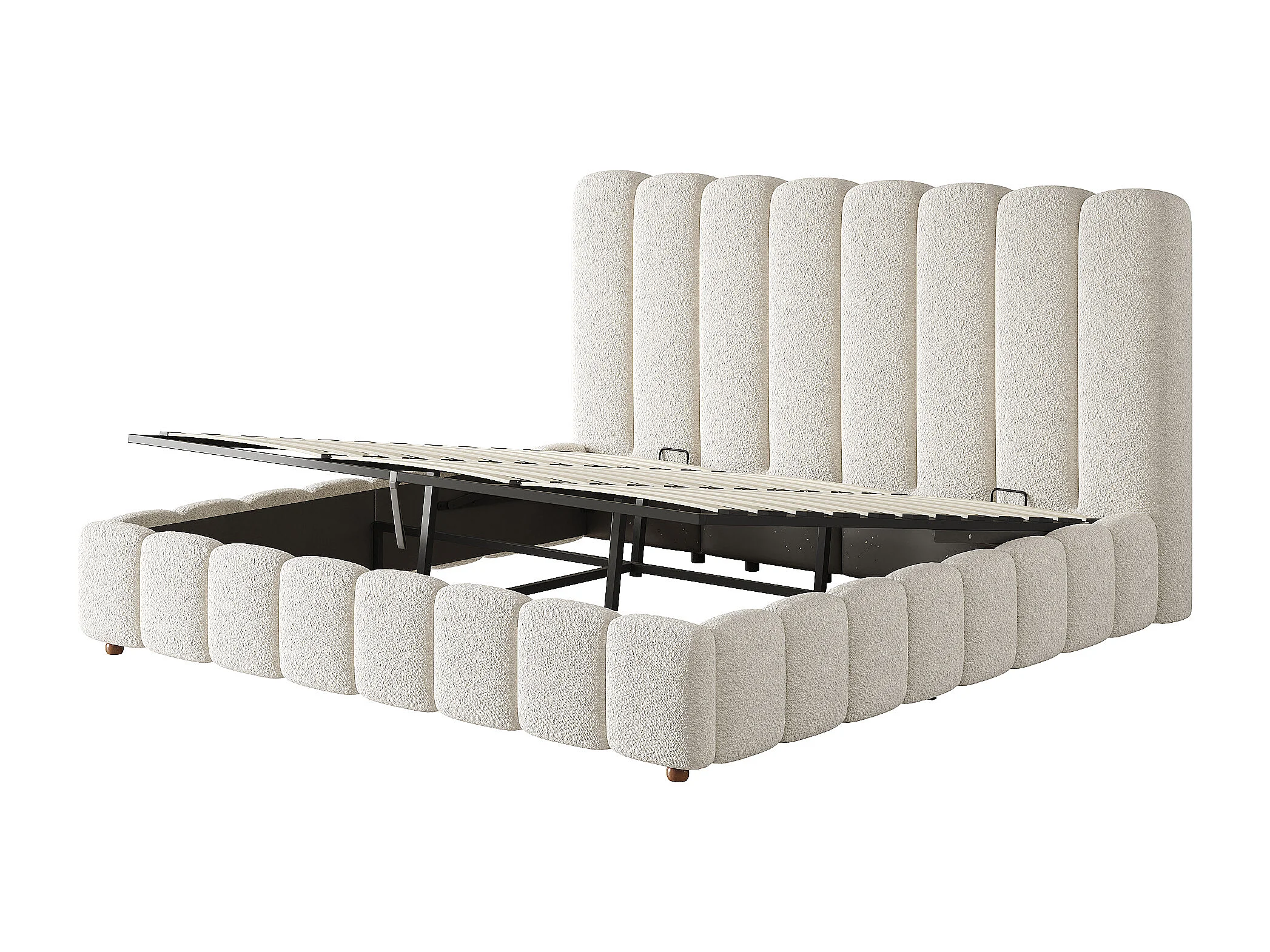 Lit coffre rembourré 200x200cm - avec sommier à lattes - Tissu bouclé - Blanc (sans matelas)