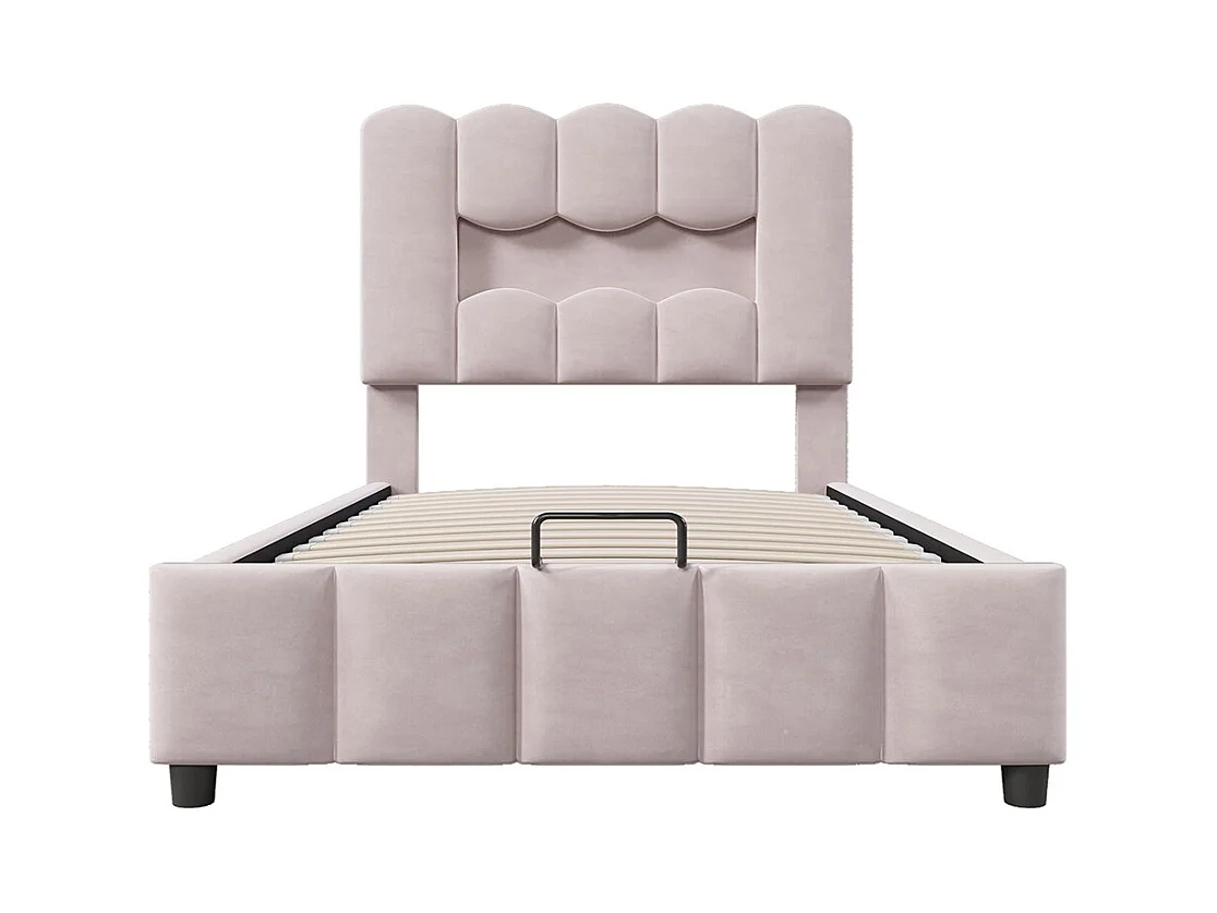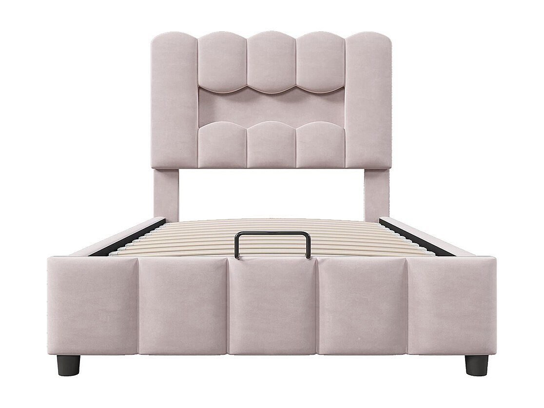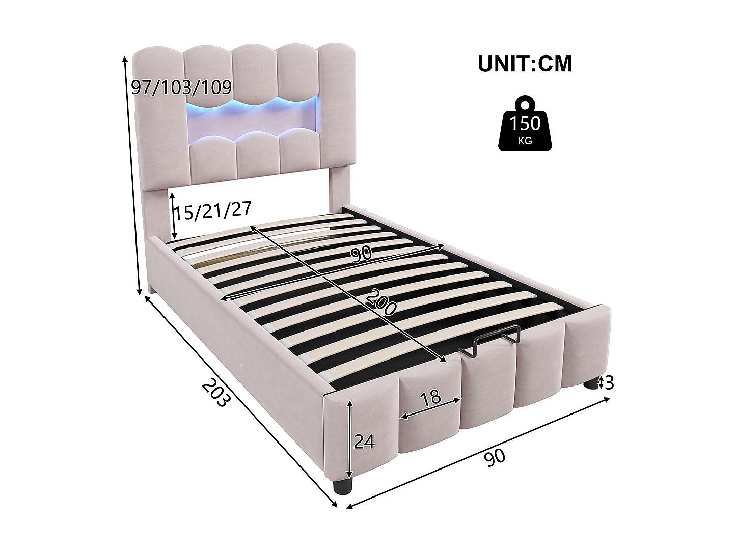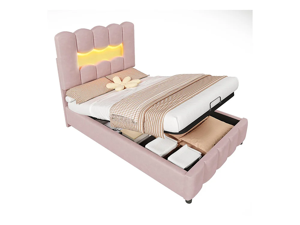 Lit coffre rembourré 90x200 cm sans matelas LED hydraulique tête réglable velours rose