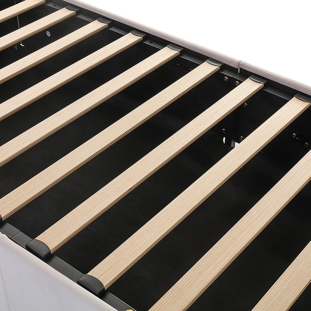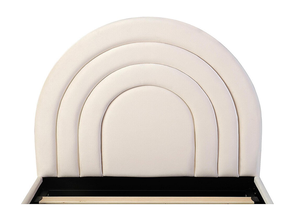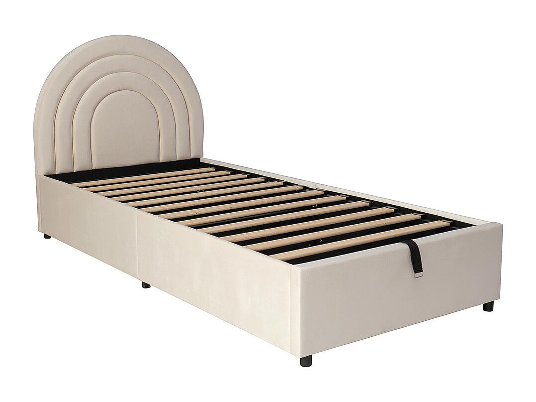 Lit coffre rembourré beige 90x200 cm pour enfant adolescent avec sommier à lattes tête de lit rangement velours montage facile