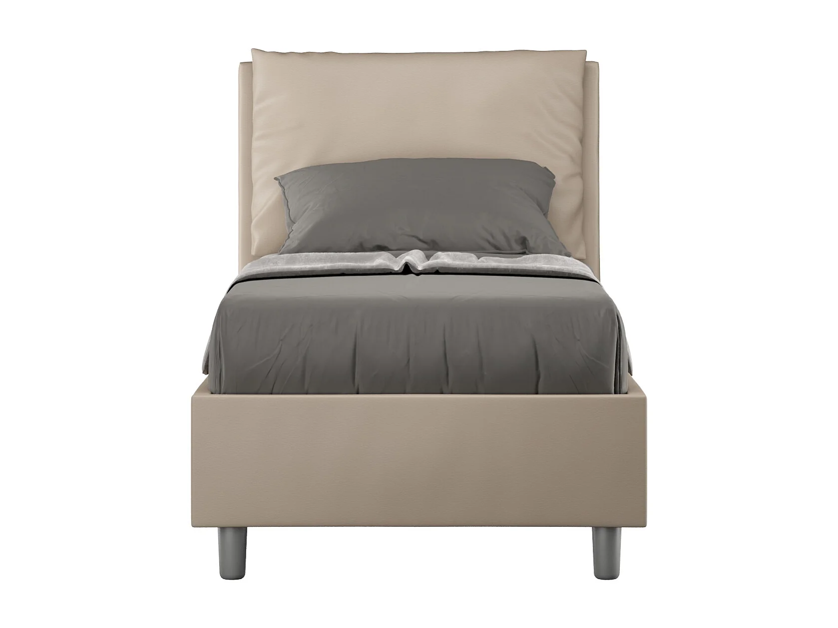 Lit coffre rembourré en simili cuir gris tourterelle Antea 80x210