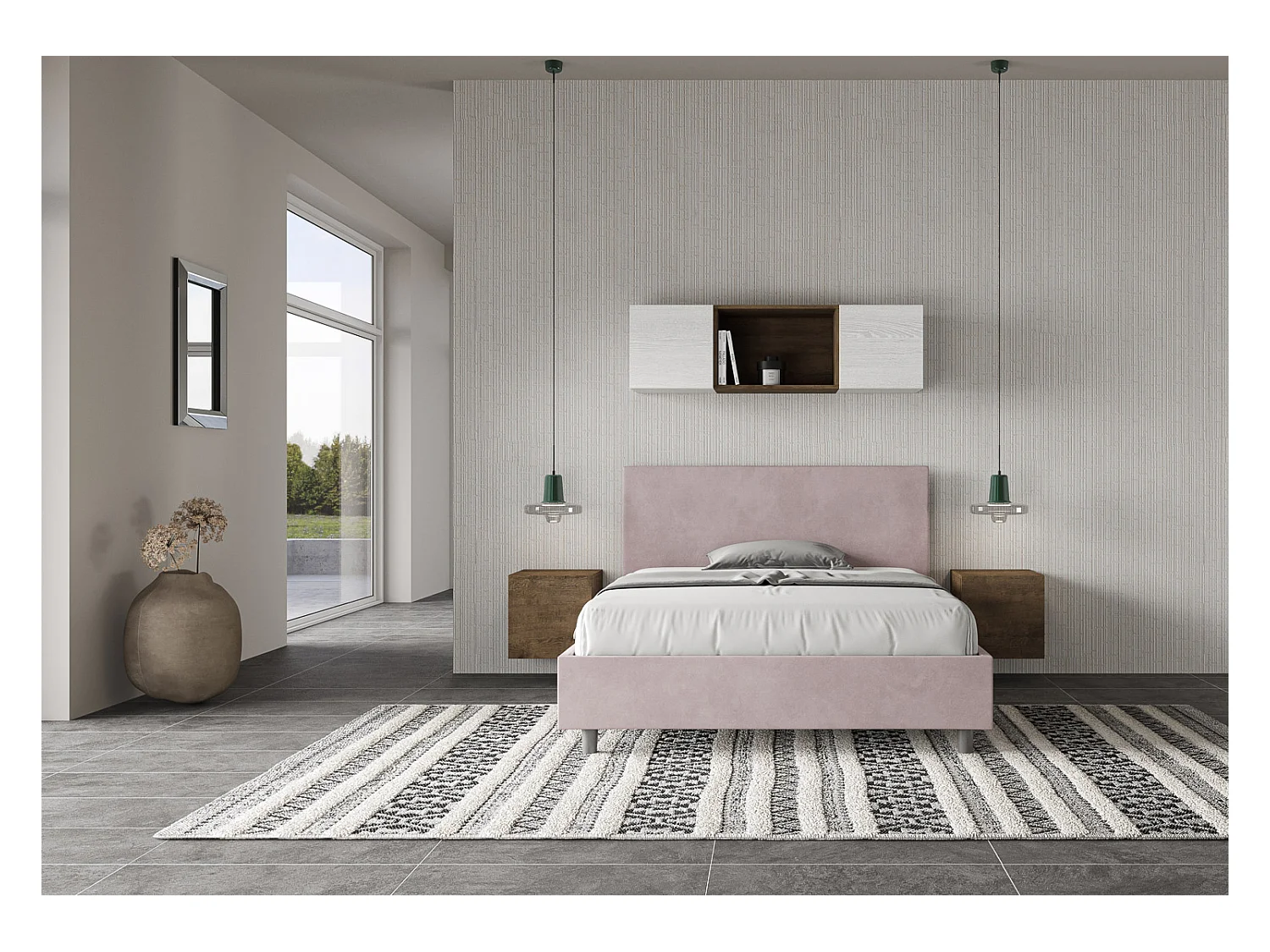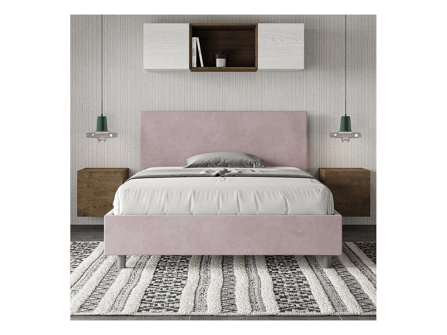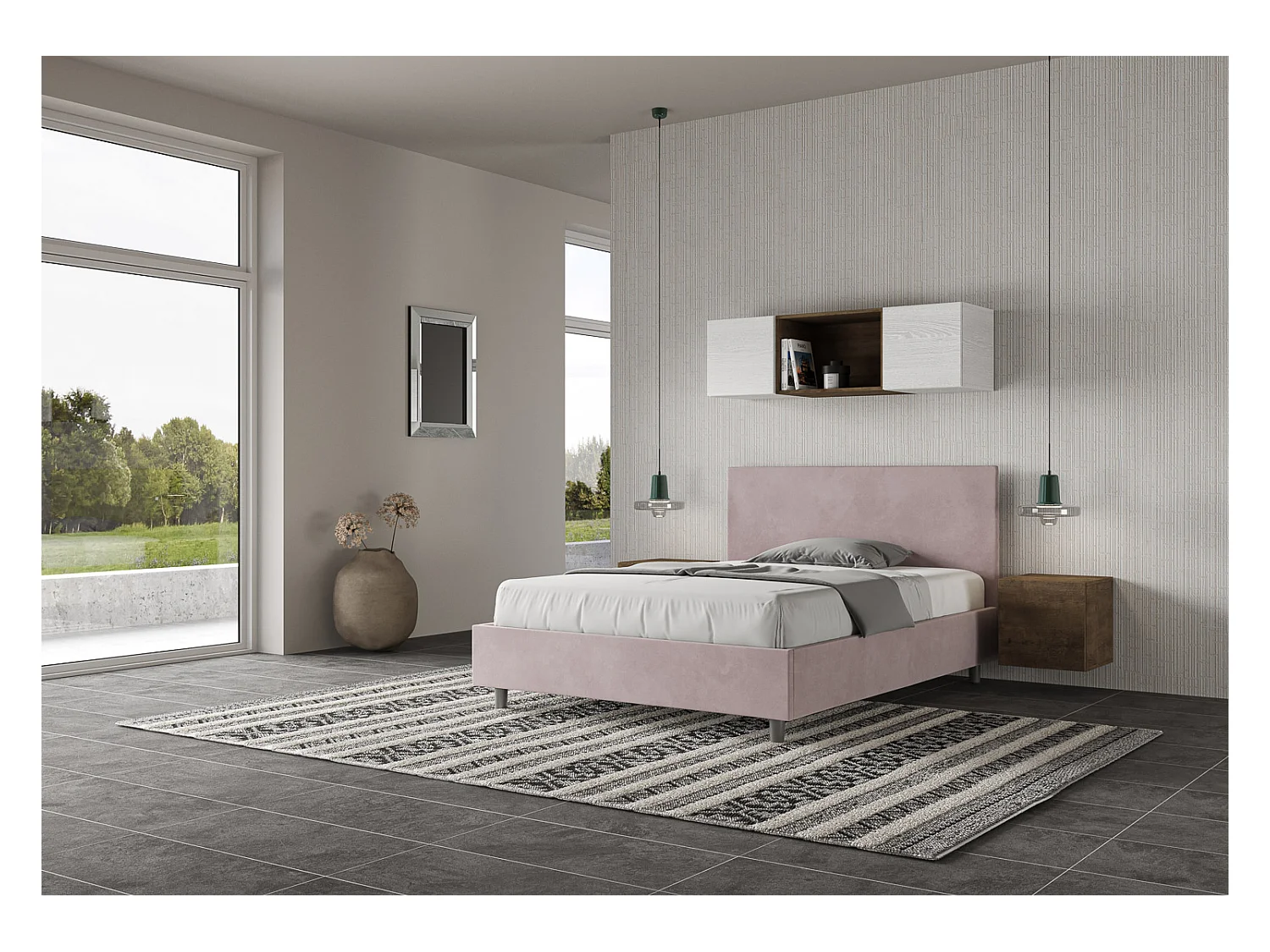 Lit double coffre rembourré 140x210 microfibre lilas Adele