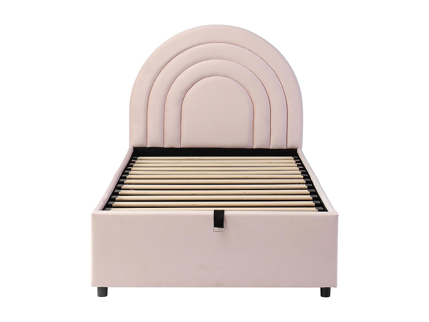 Lit coffre rembourré rose 90x200 cm pour enfant et adolescent avec sommier à lattes tête de lit rangement velours montage facile
