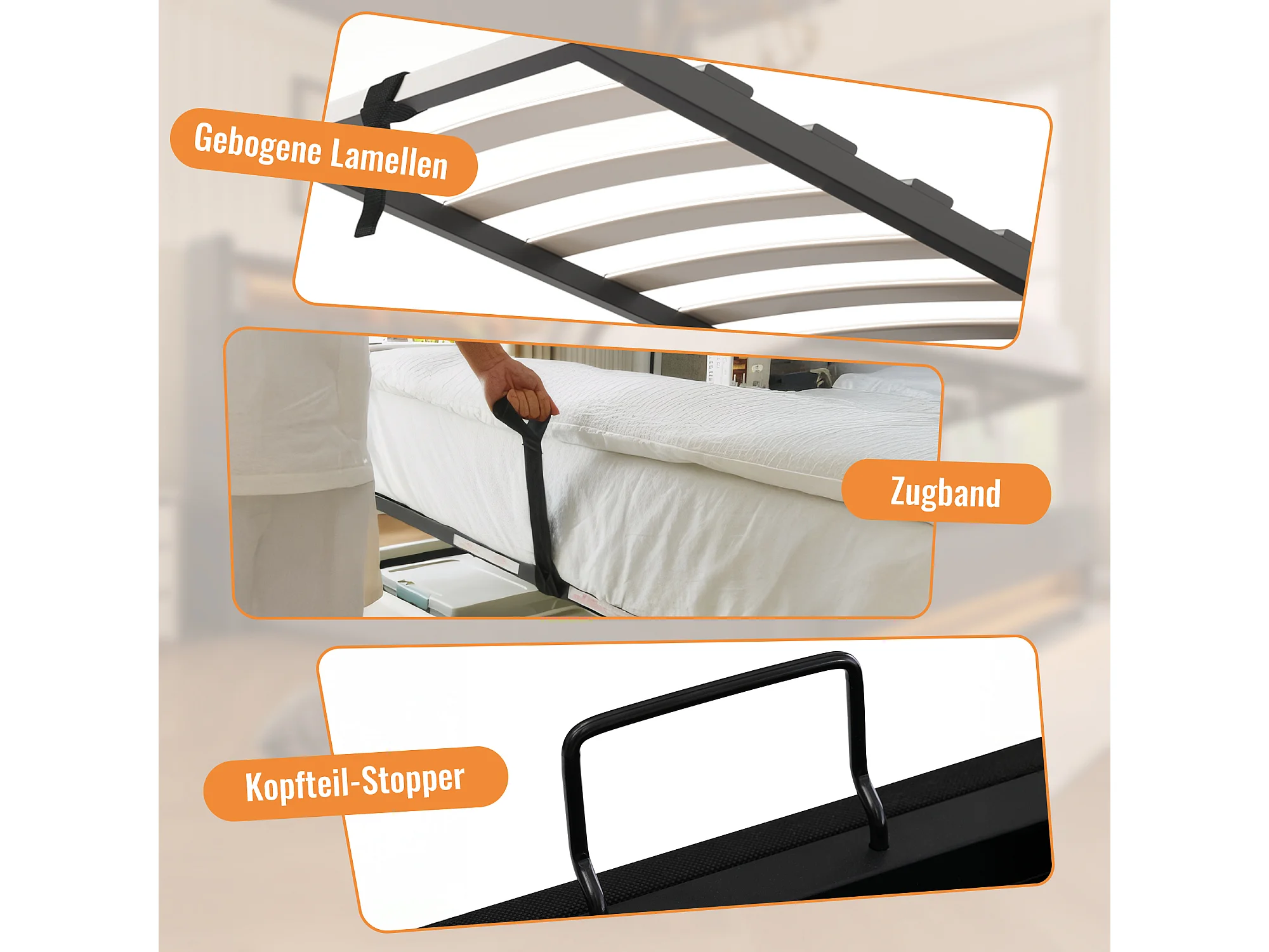 Lit coffre rembourré simple - 90 x 200 cm - avec porte-gobelet caché et station de charge - lin - gris(avec matelas)
