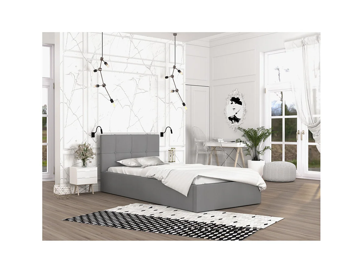 Lit coffre RINO 120 x 200 cm - Sommier inclus Gris clair