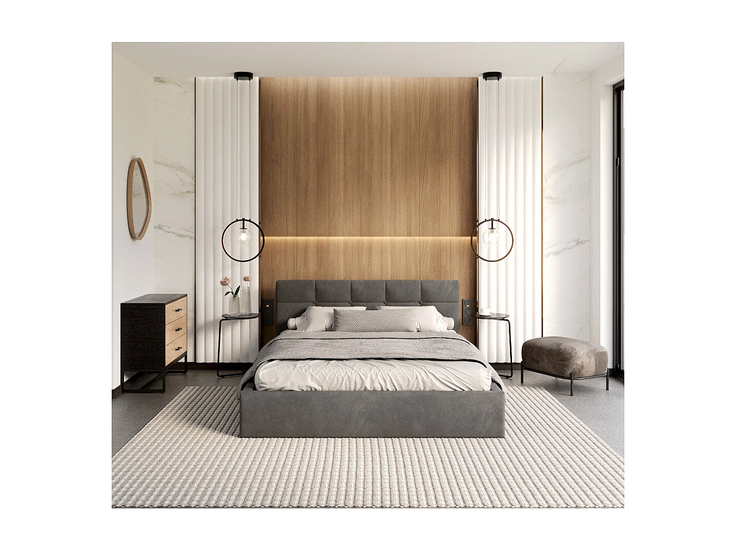 Lit coffre RINO 120 x 200 cm - Sommier inclus Gris foncé