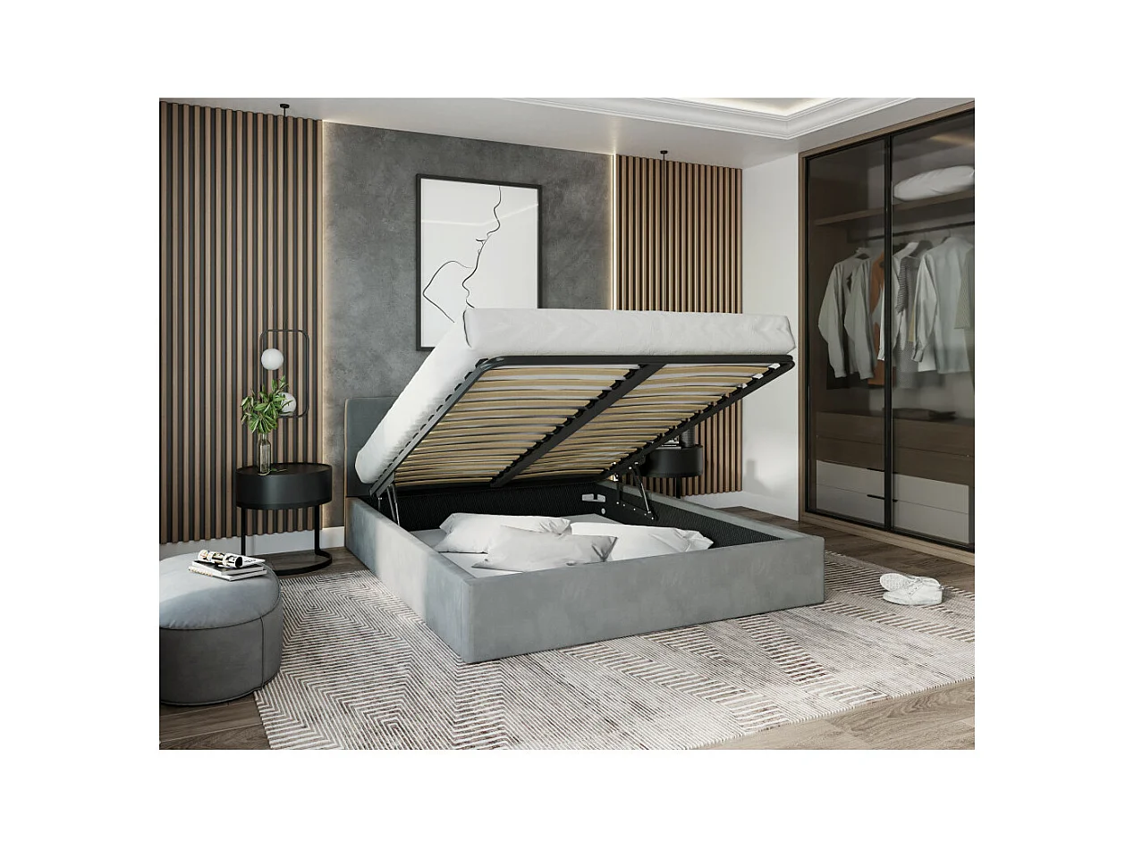 Lit Coffre Rino 180x200 - Sommier inclus Gris clair