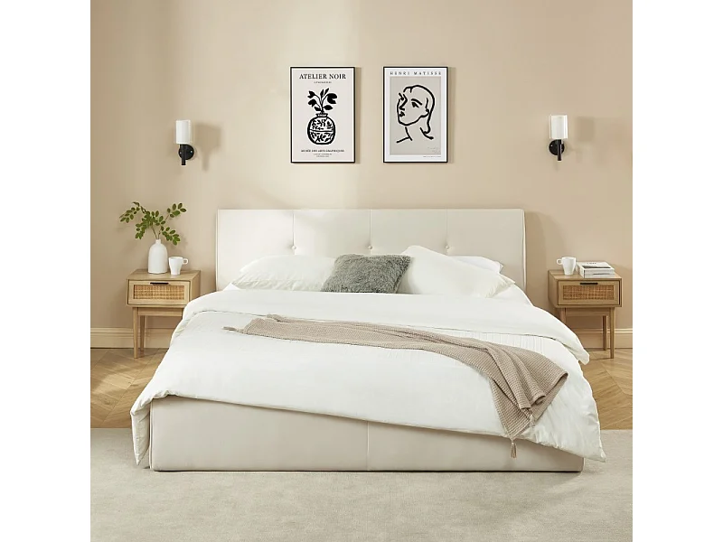 Lit coffre SEGURO velours beige crème 180x200 sommier inclus