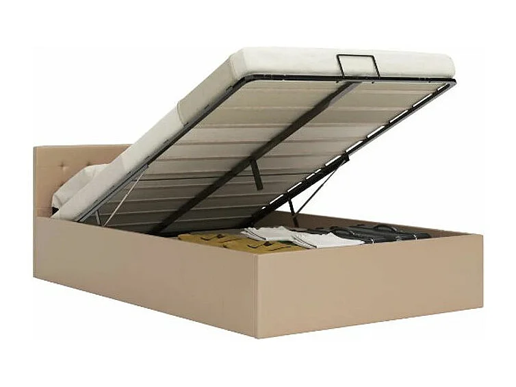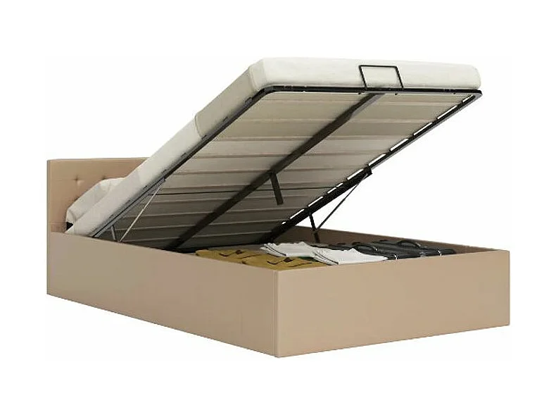 Lit coffre simili cuir beige Rundi 180x200