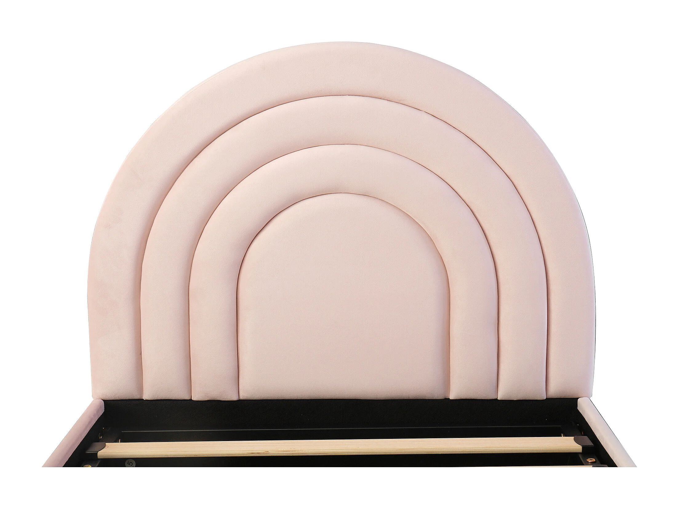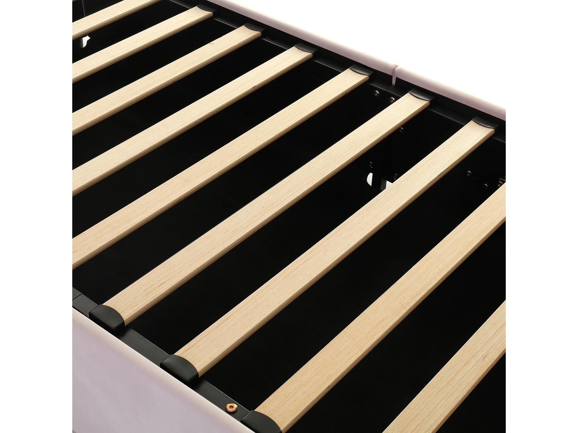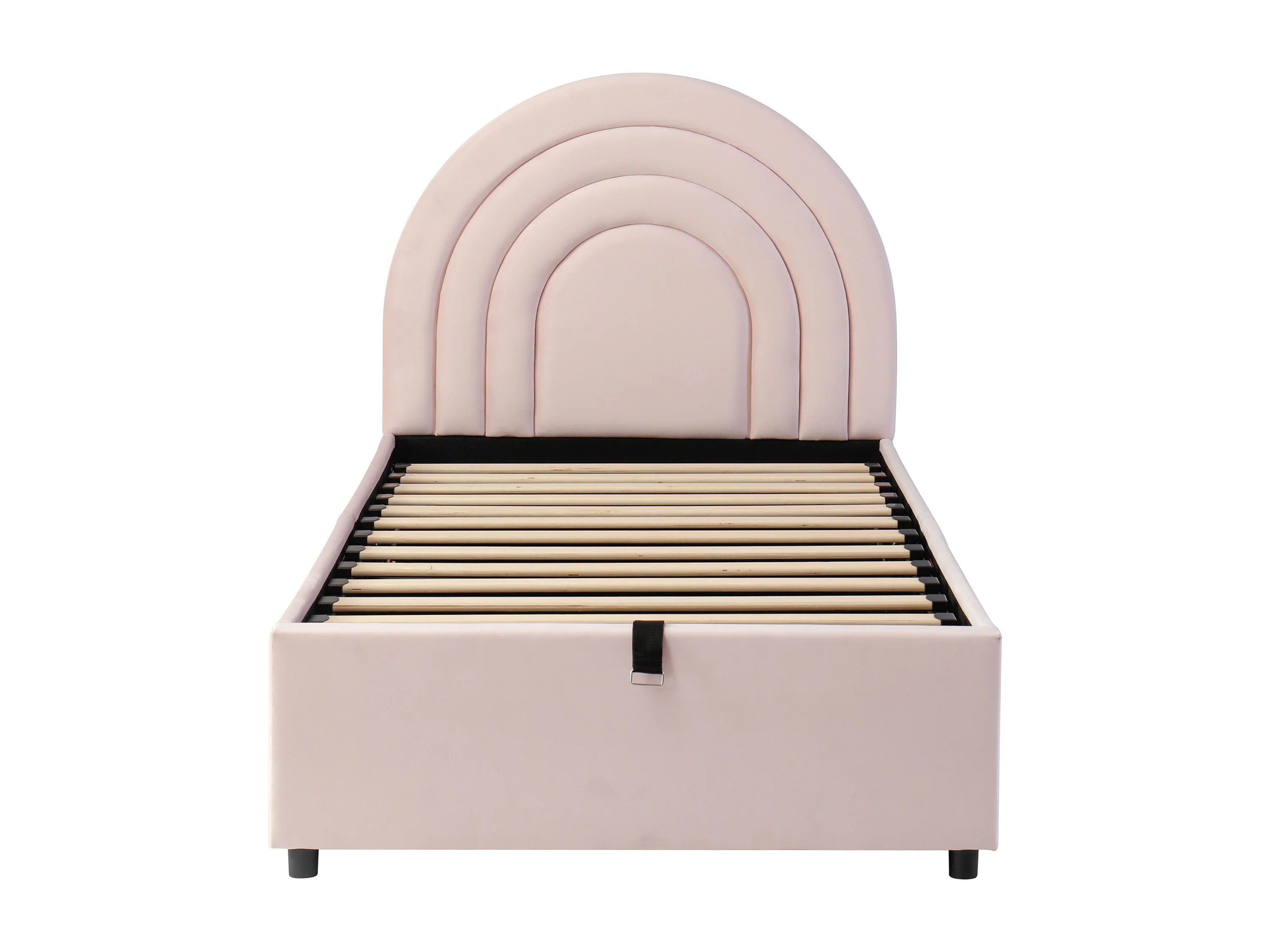 Lit coffre simple 90 x 200 cm, lit enfant avec tissu en fond, montage facile, velours rose, sans matelas