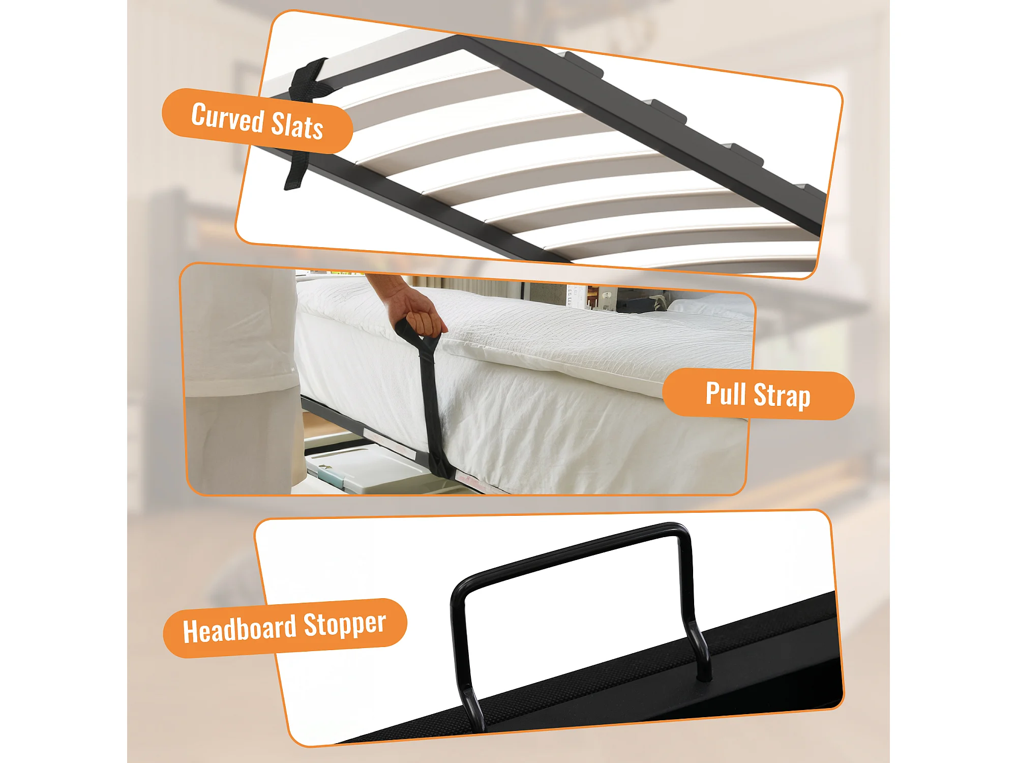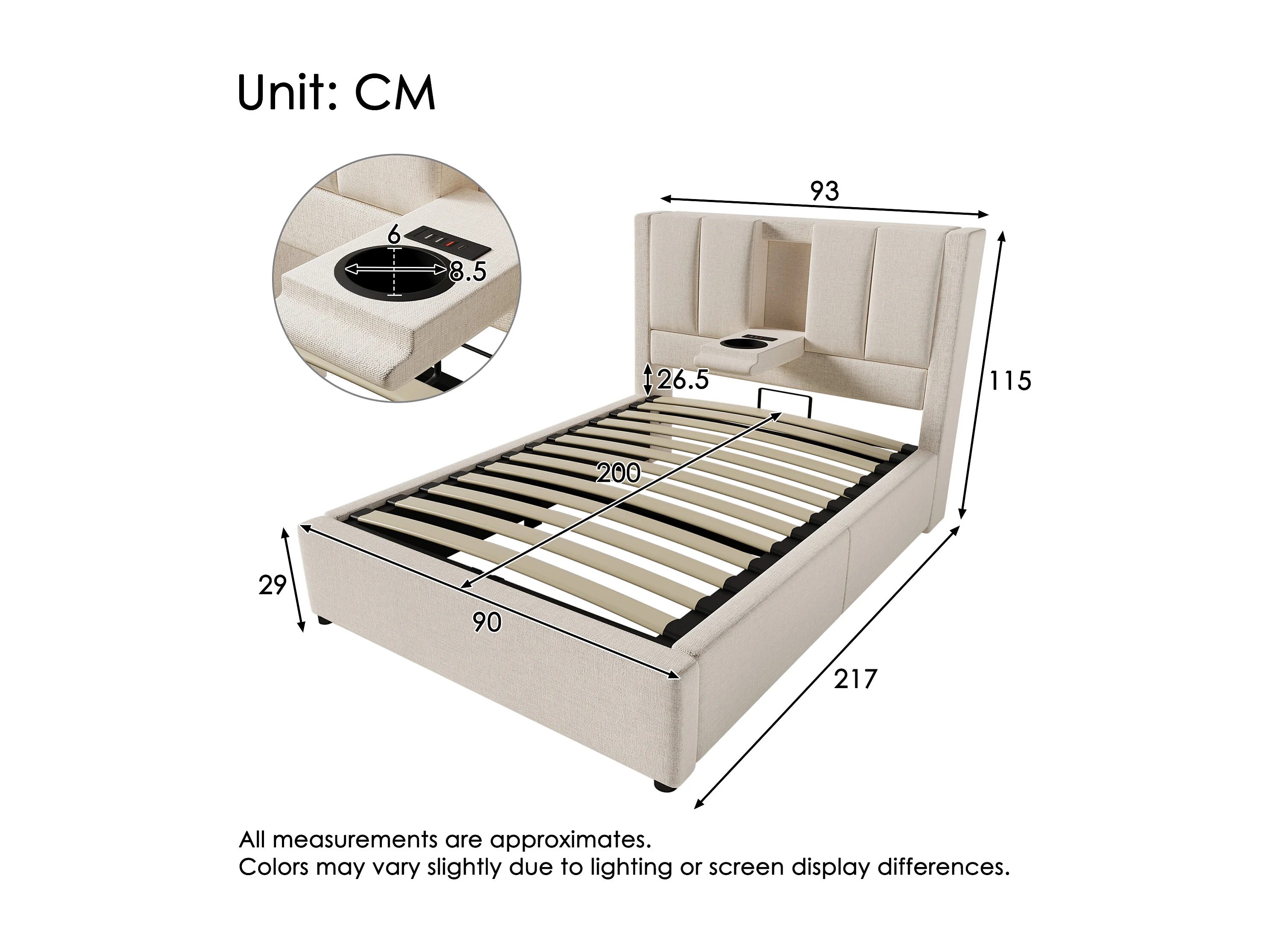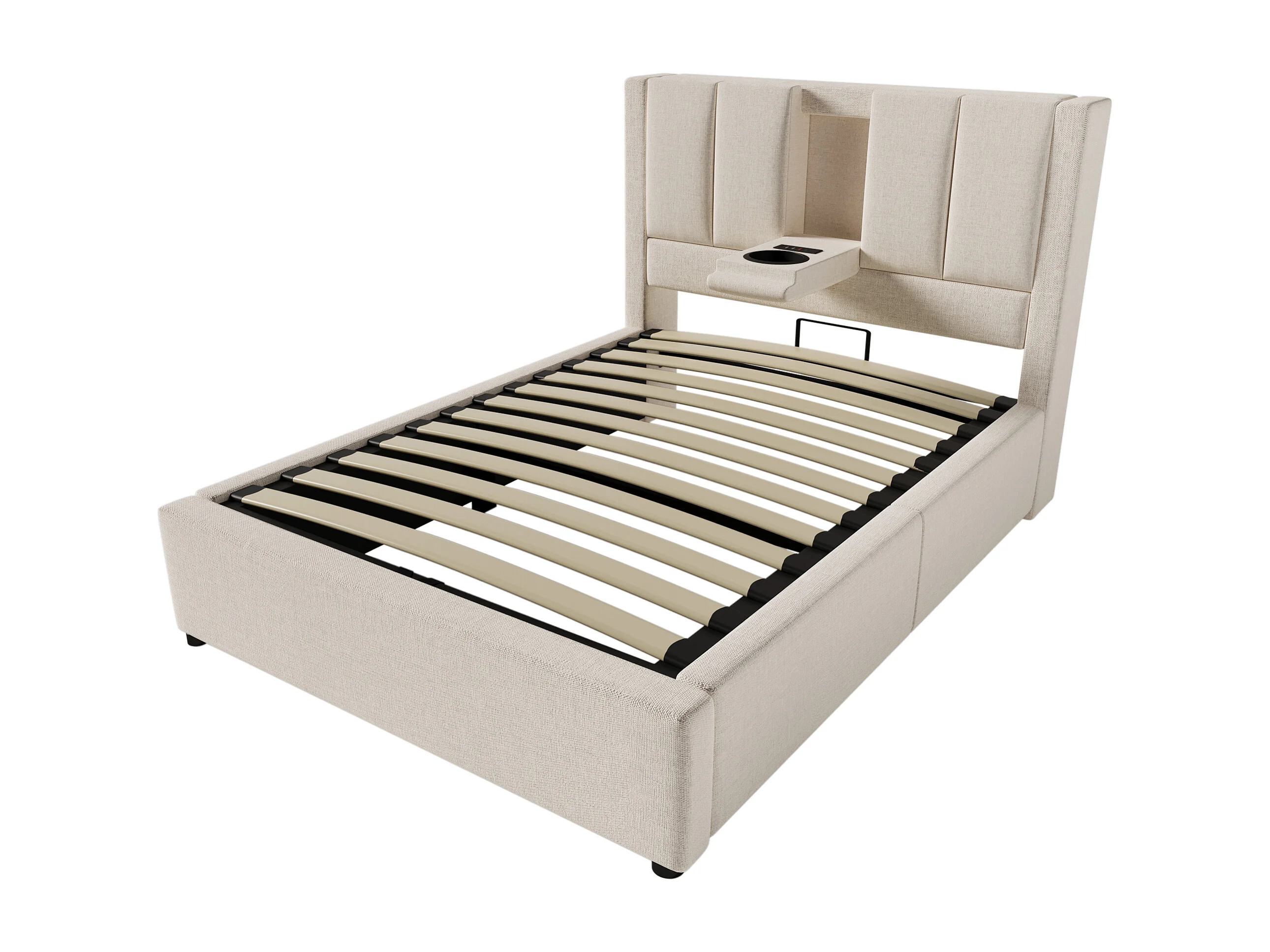 Lit coffre simple 90x 200 cm avec porte-gobelet et 3 USB ,1 Type-C - Lin beige