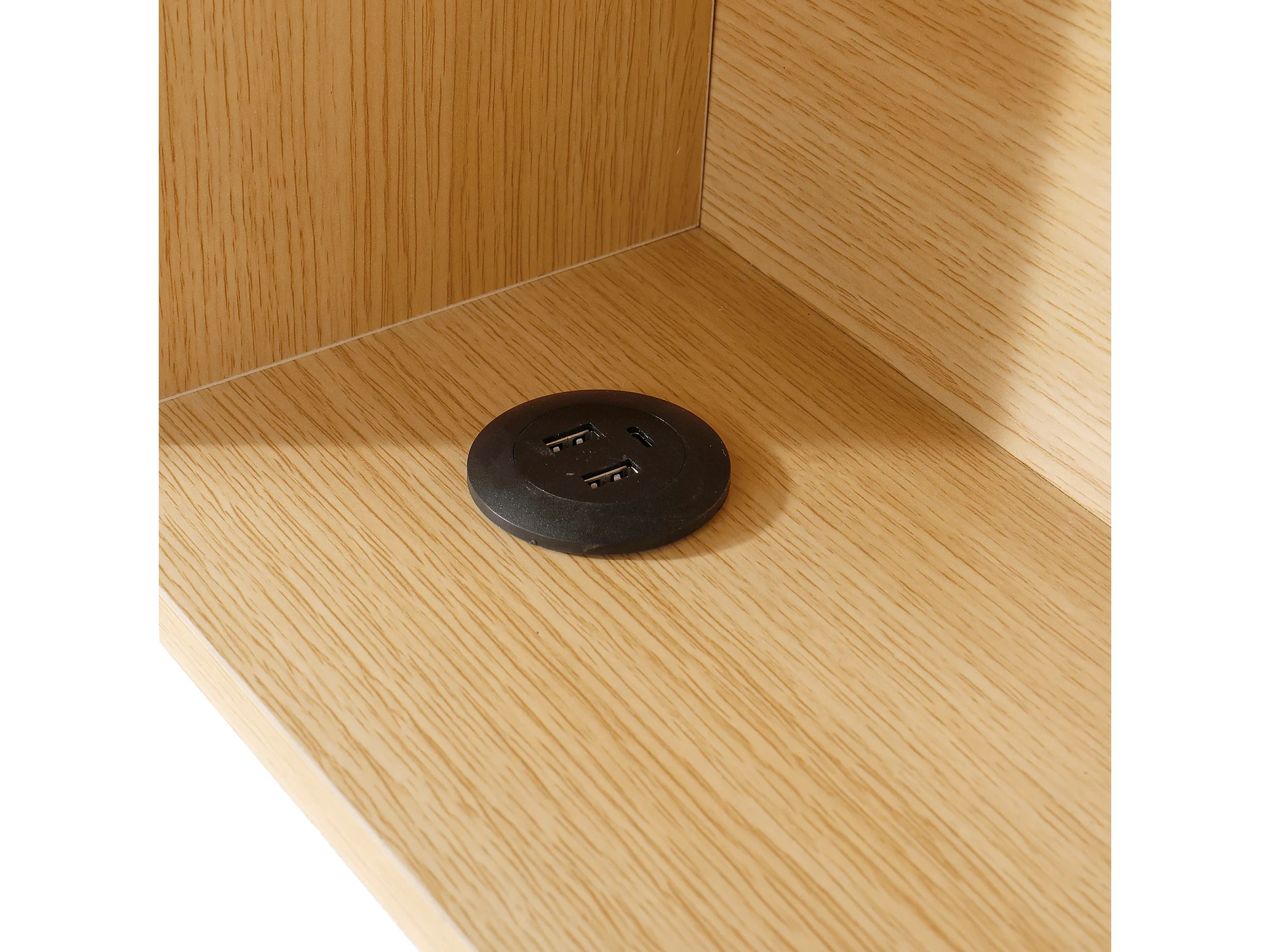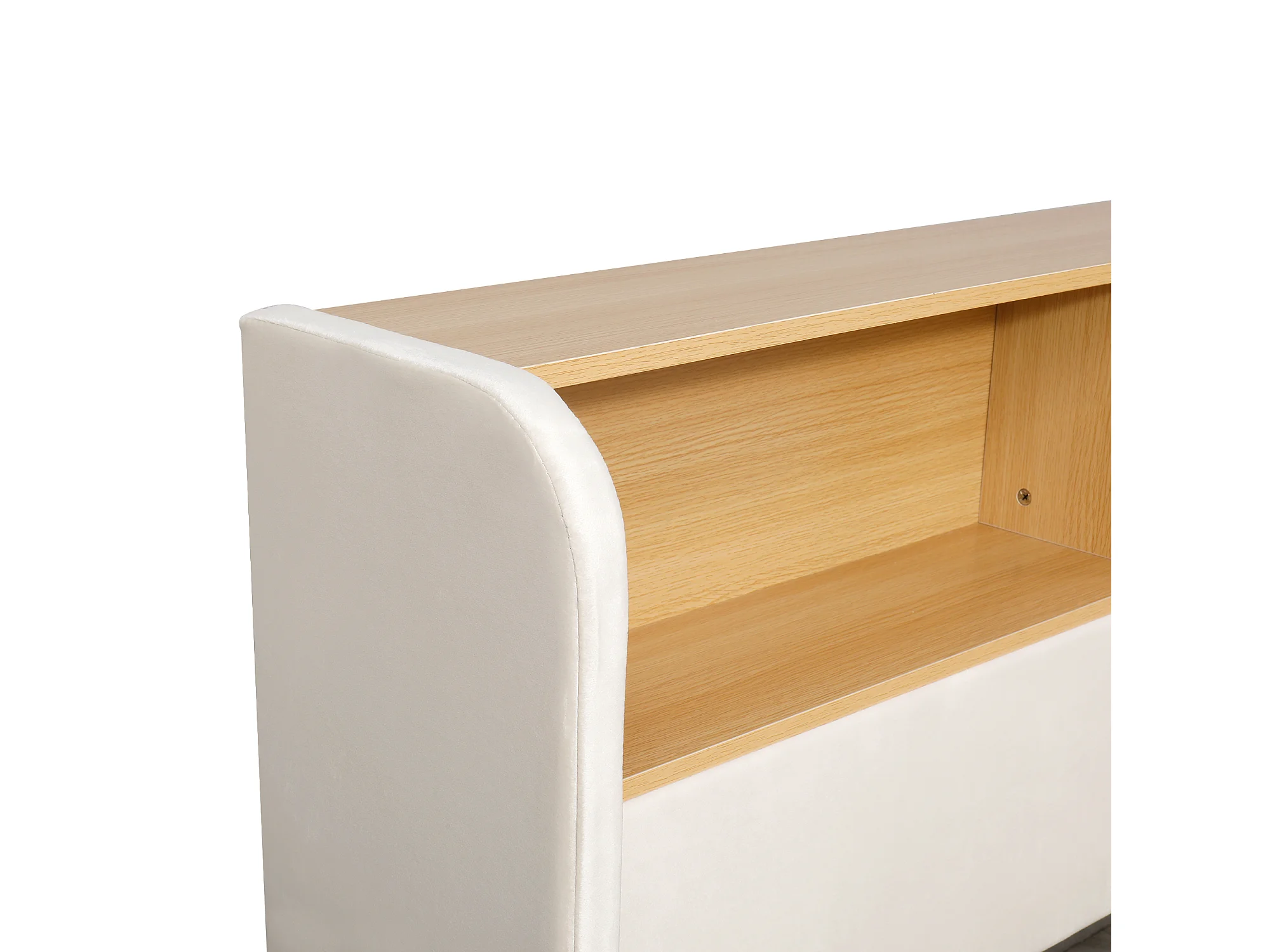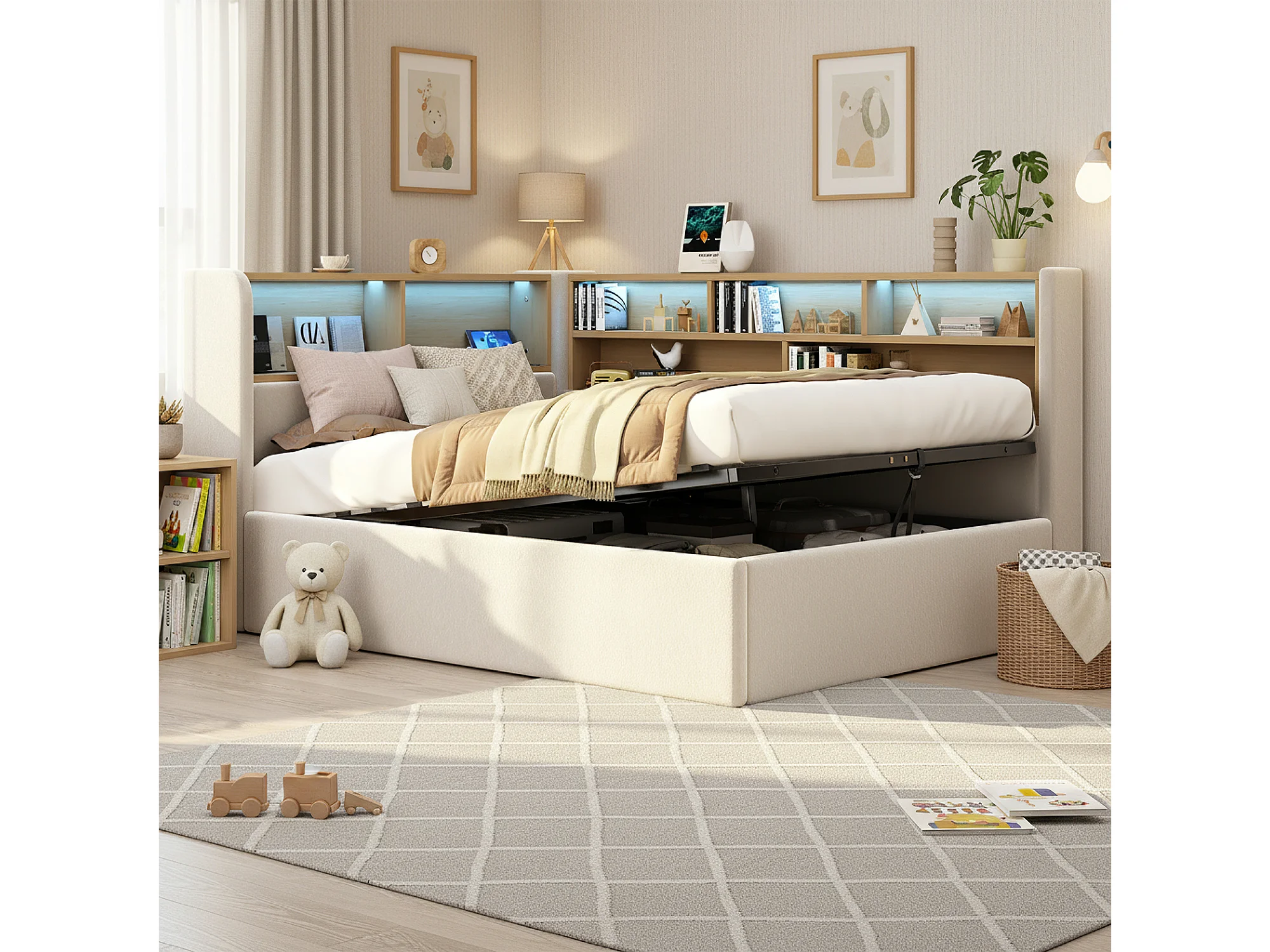 Lit coffre simple 90x200 cm avec LED et ports USB/Type-C - Velours beige