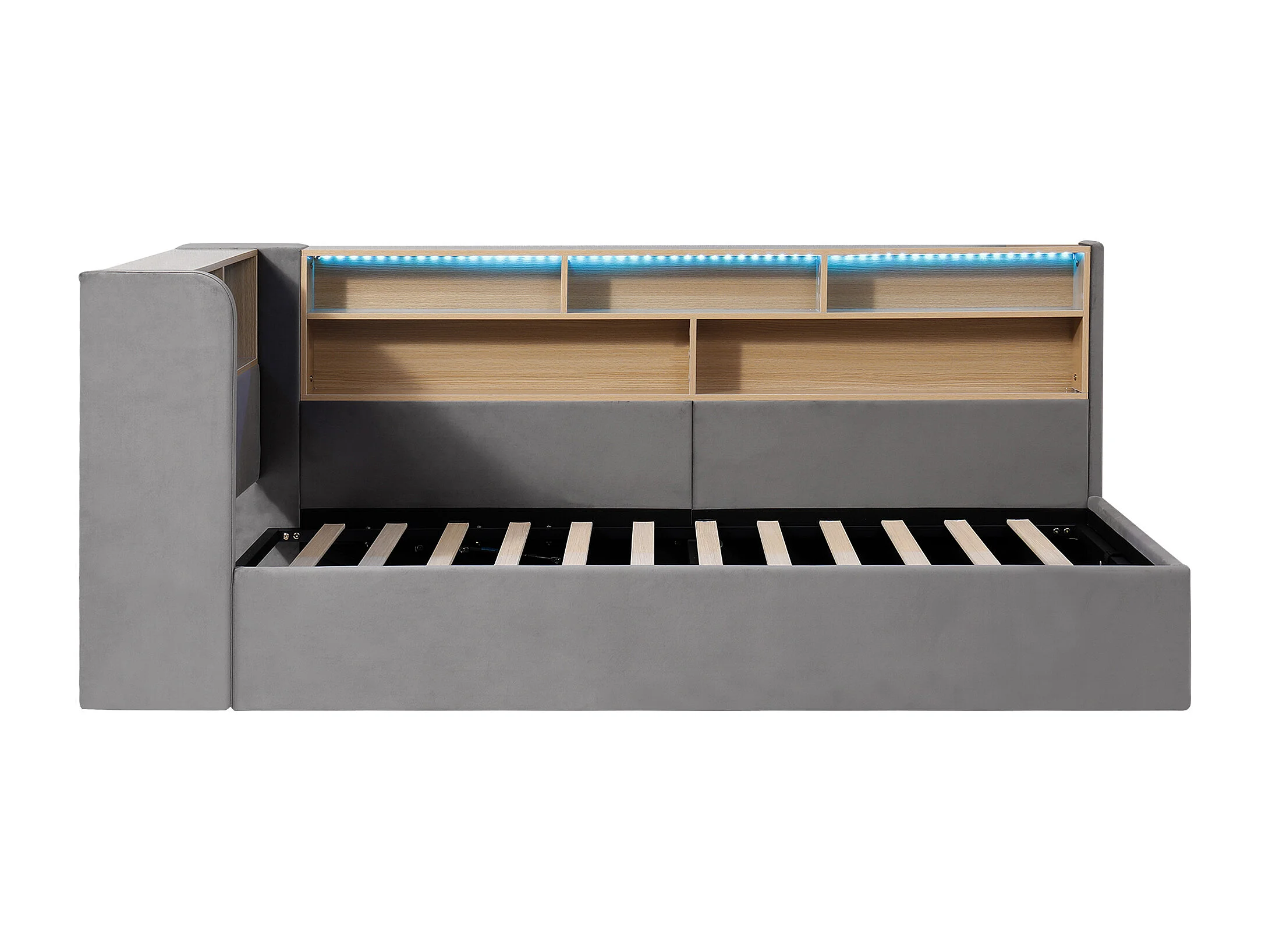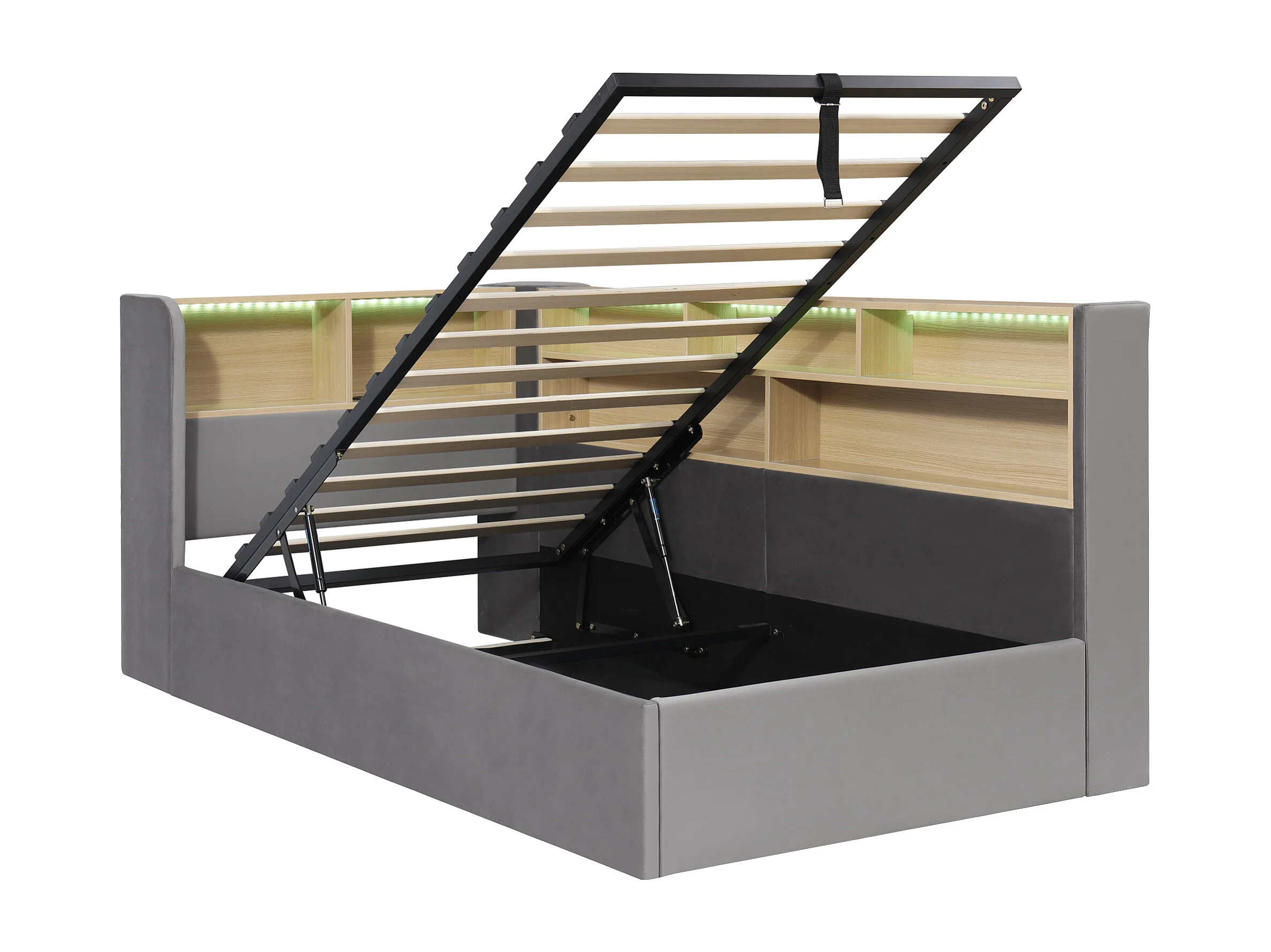 Lit coffre simple 90x200 cm avec LED et ports USB/Type-C - Velours gris