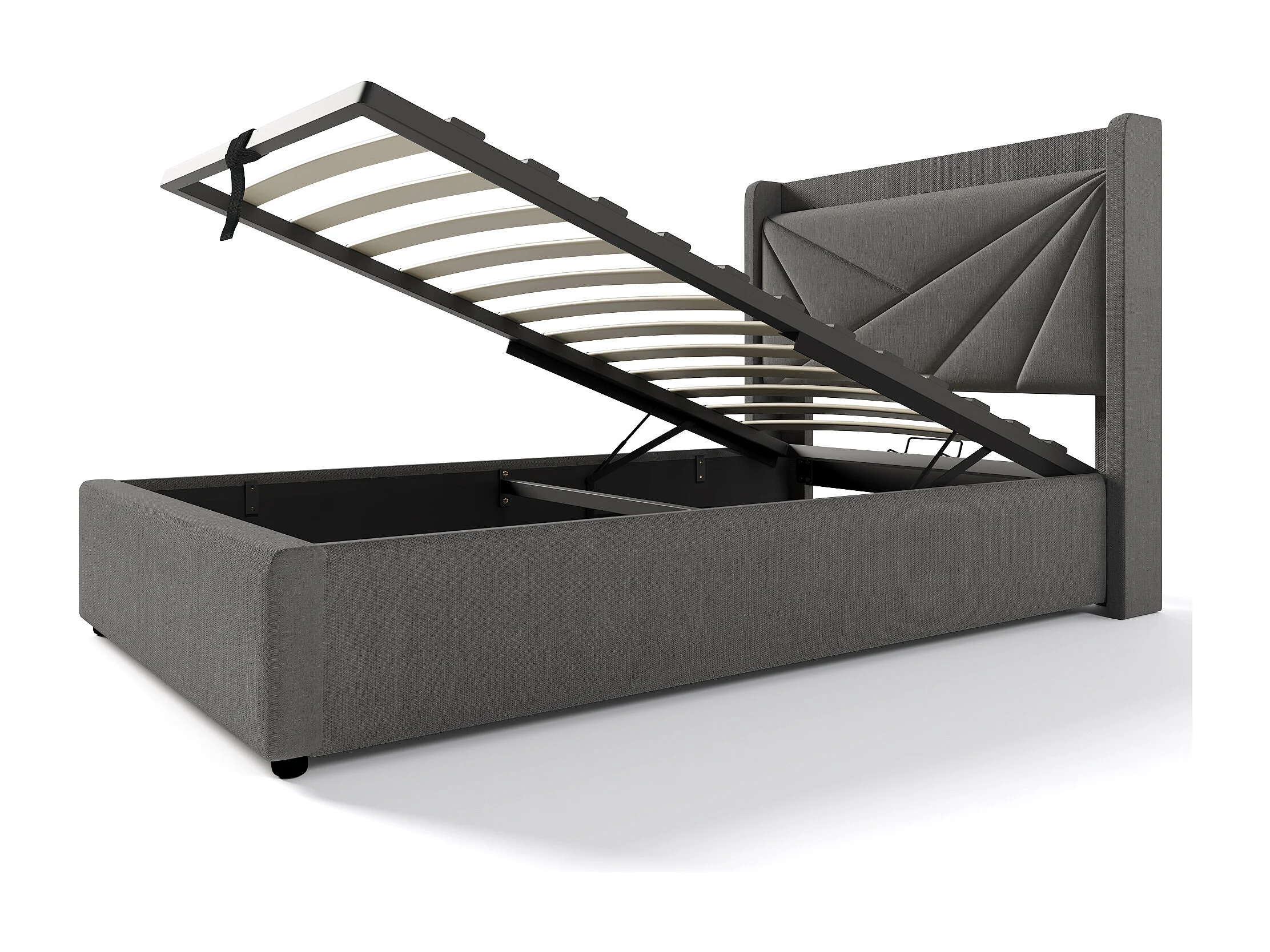 Lit coffre enfant 90x200 cm en Lin - Tête de lit LED,charge USB-C, gris, sans matelas