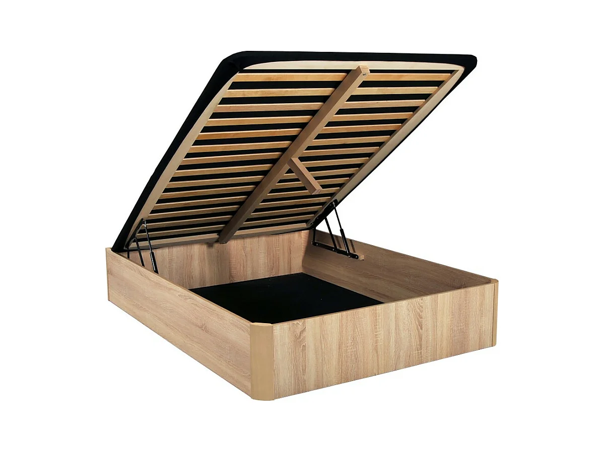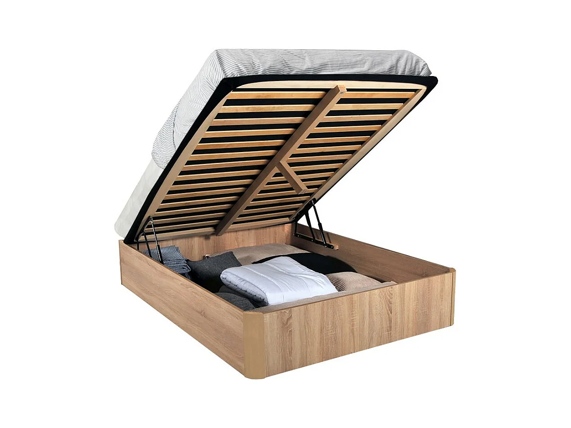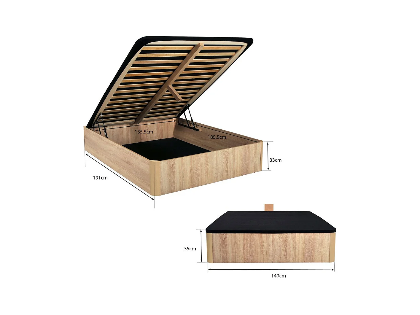 LIT COFFRE SPIRO 140x190cm + 1 SOMMIER / Décor Chêne Blanchi