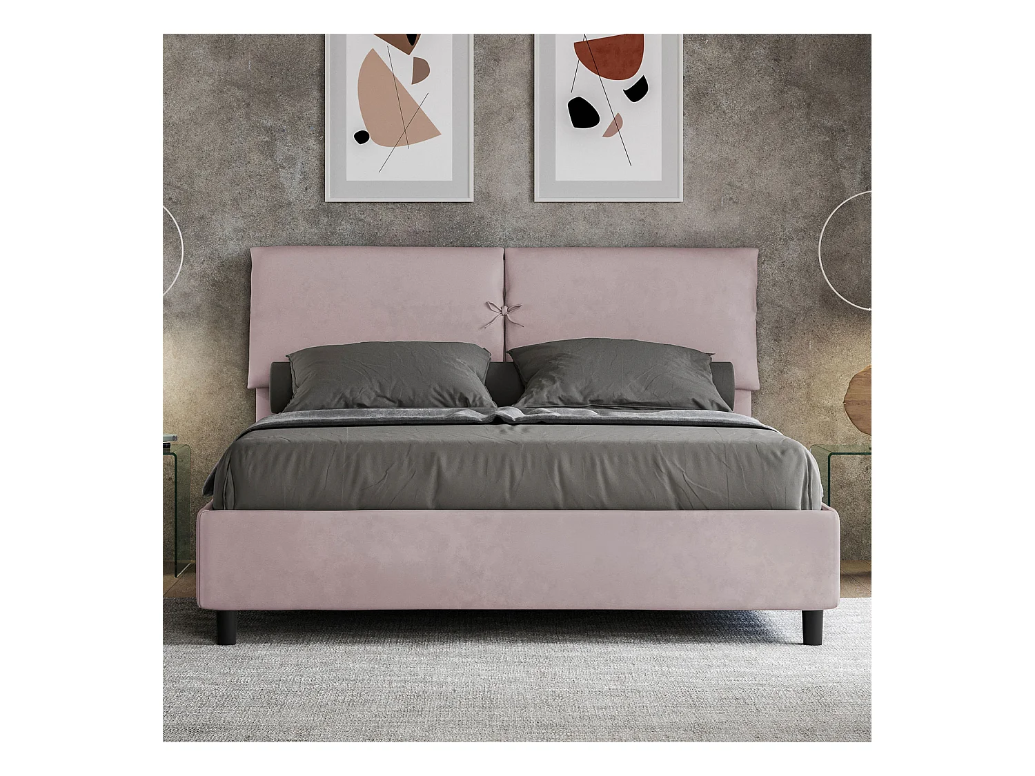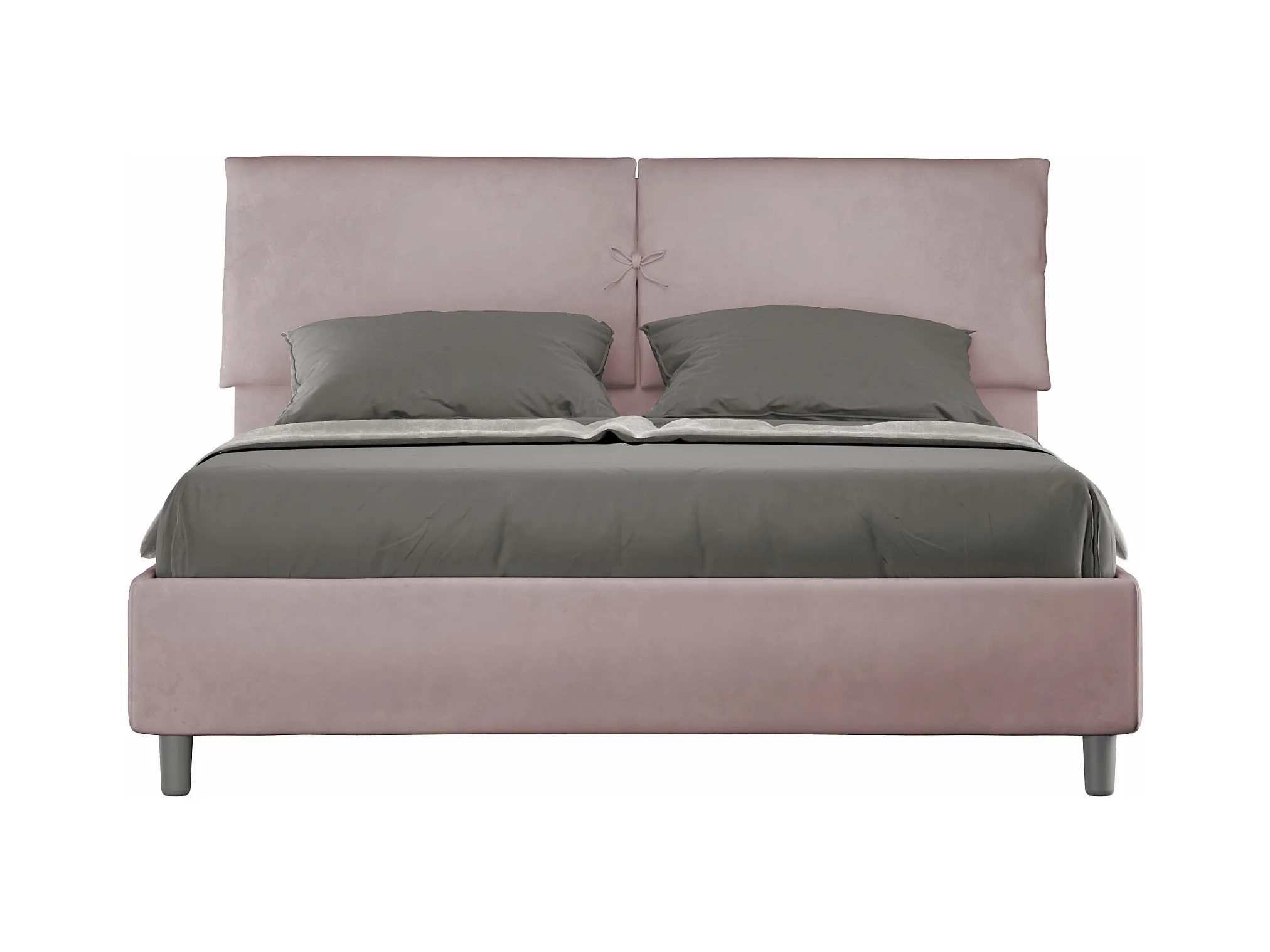 Lit coffre surélevé double capitonné 160x200 en microfibre glycine Mados