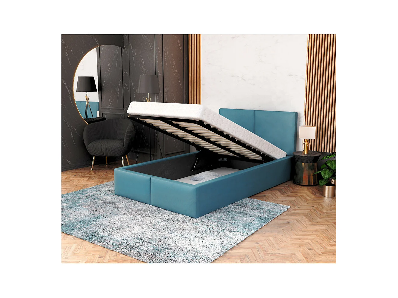 Lit coffre Tesia 120x200 - Sommier inclus Azur