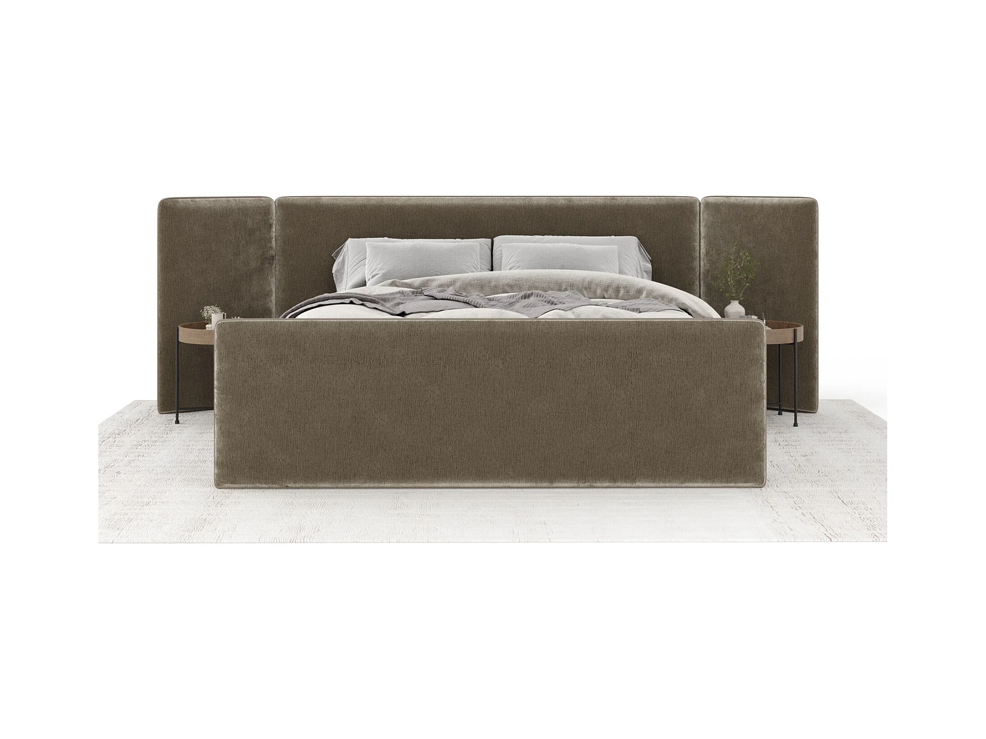 Lit coffre Tokyo - 200 x 200 cm - toile tissée - beige