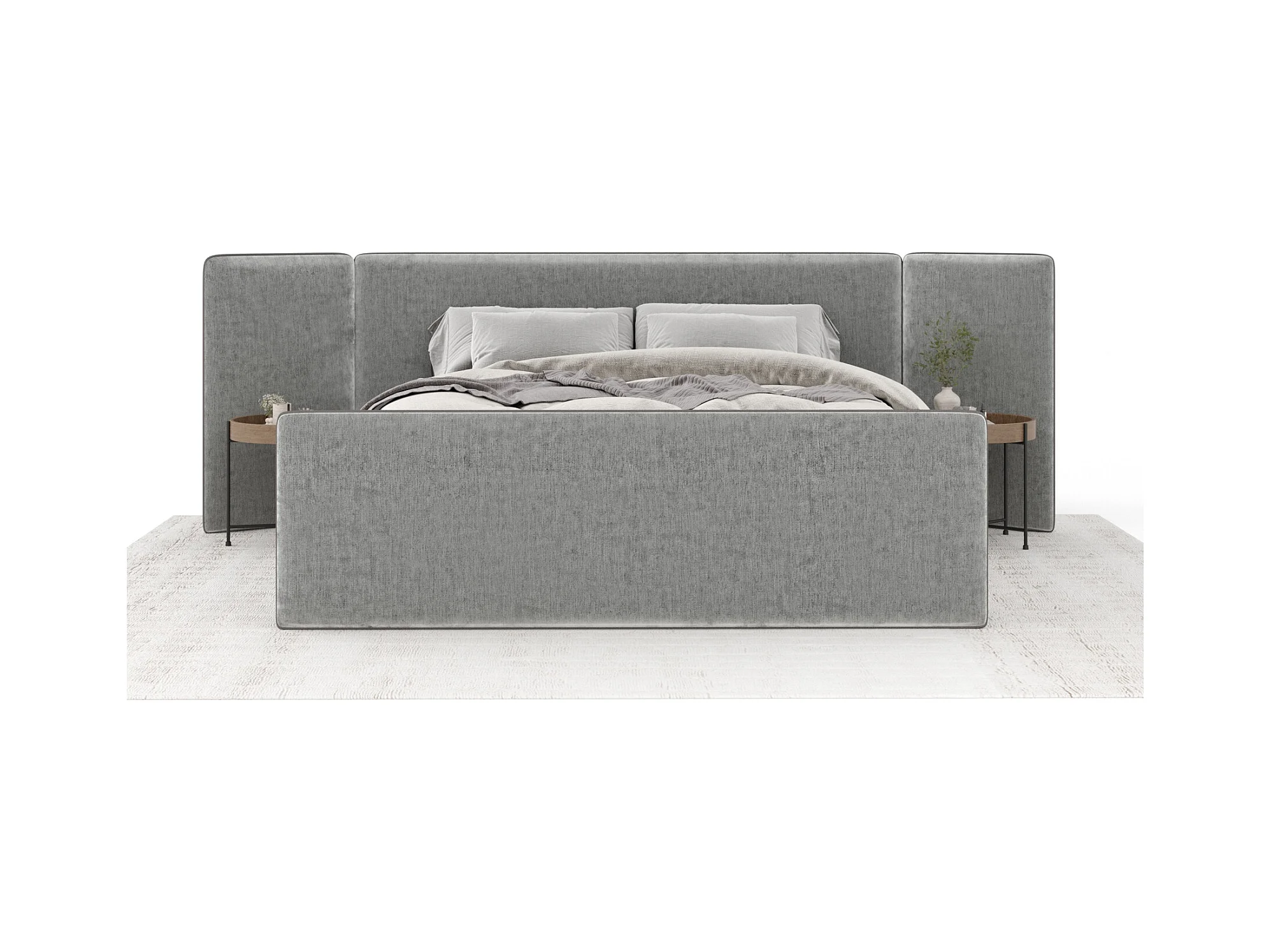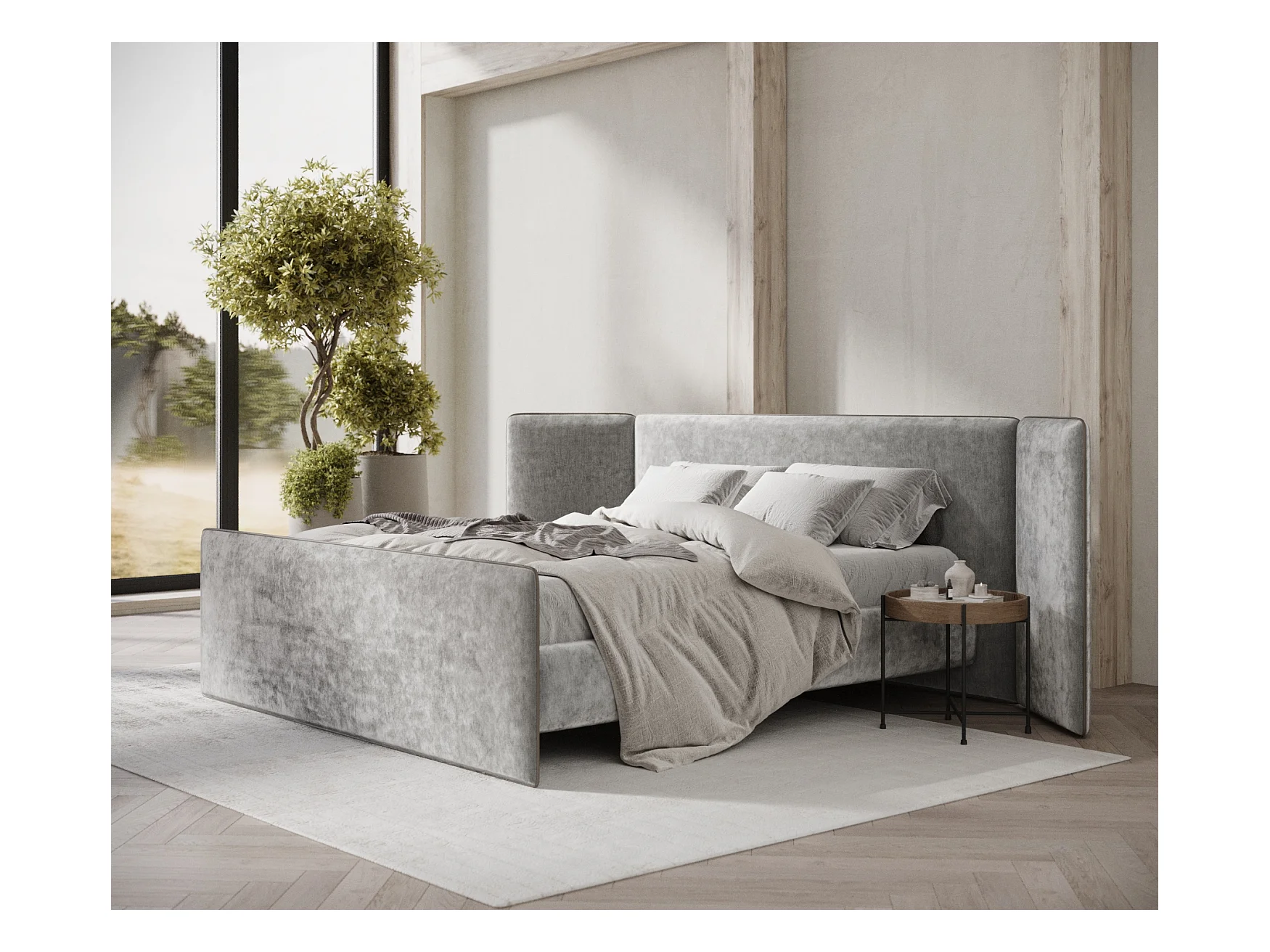 Lit coffre Tokyo - 200 x 200 cm - toile tissée - gris clair