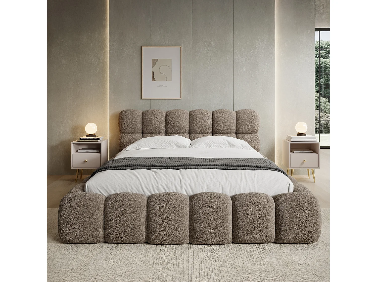 Lit coffre Tomaso 160cm Bouclette Taupe