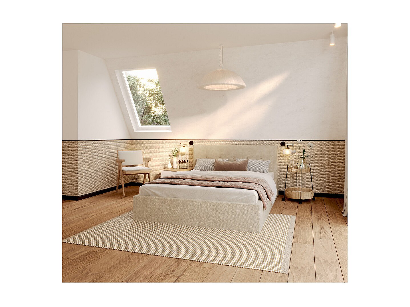 Lit Coffre Tulsa 120x200 cm - Sommier inclus Crème