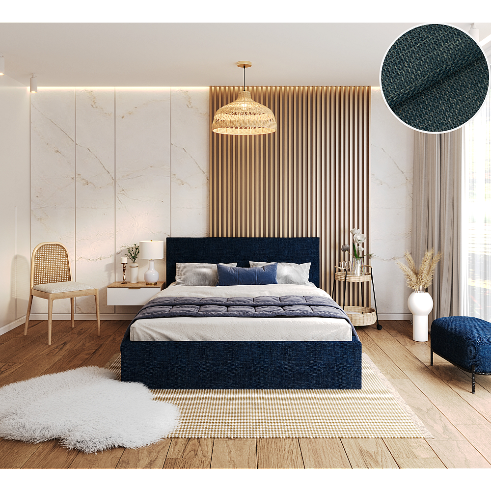 Lit Coffre Tulsa 140x200 cm - Sommier inclus Bleu marine
